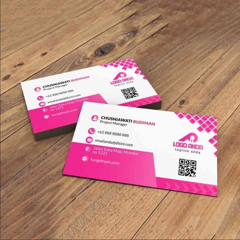 Kartu nama ini tampil dinamis dengan kombinasi warna pink fuchsia dan putih yang memberikan kesan tegas, stylish, sekaligus profesional. Nama pemilik...