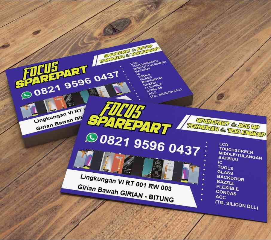Kartu nama ini hadir dengan latar biru cerah yang menonjolkan kesan segar, profesional, dan sangat mudah dikenali. Bagian atas menampilkan nama usaha...