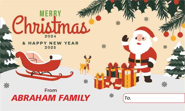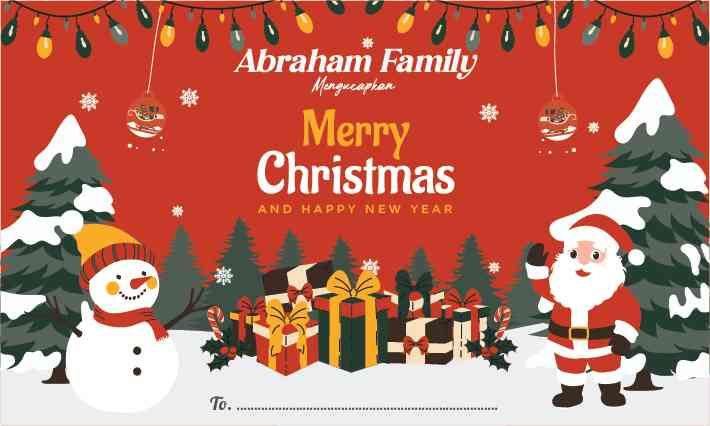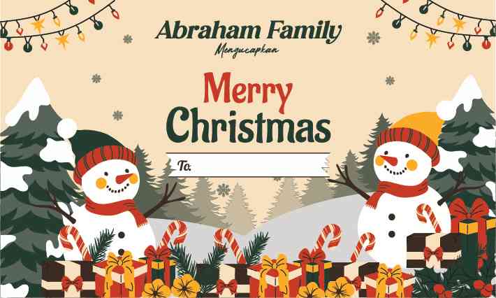 Kartu ini cocok digunakan untuk mengirimkan ucapan hangat kepada keluarga, teman, atau kolega, menggambarkan suasana Natal yang penuh cinta, harapan, dan kebahagiaan.