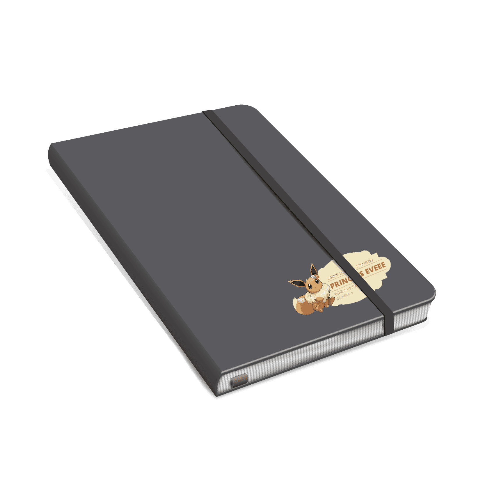 Stiker pada notebook ini menampilkan karakter Eevee yang lucu dengan aksesori mahkota kecil berwarna merah muda, memberikan kesan manis dan menggemask...