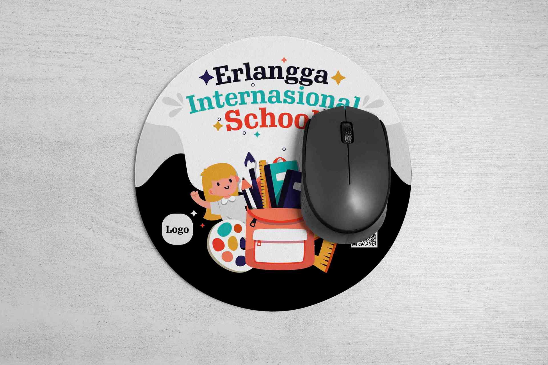 Mousepad berdesain tema sekolah ini menampilkan latar biru cerah dengan elemen visual mencolok seperti gambar roket, pensil warna, penggaris, penghapu...