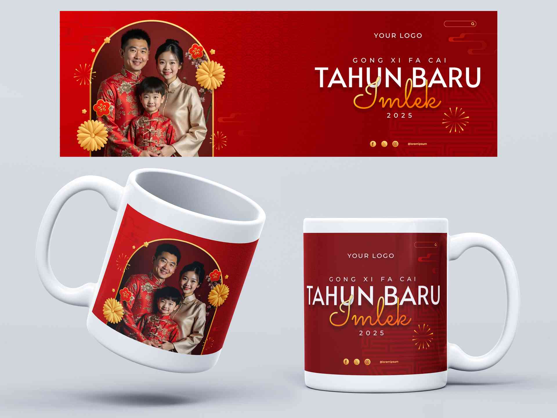 Mug dengan tema Shio Ular dan latar belakang putih dengan tambahan ornamen imlek berwarna merah tidak hanya berfungsi sebagai souvenir, tetapi juga se...