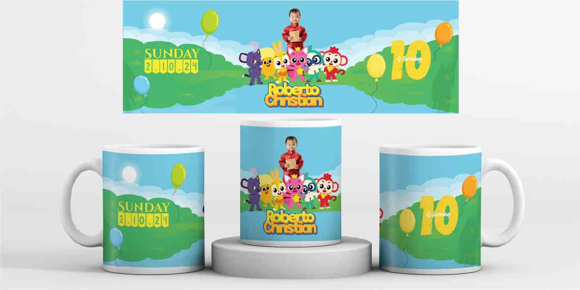 Mug ulang tahun ini menawarkan desain yang ceria dan penuh warna dengan tema Pinkfong dan teman-teman lucu dari dunia Pinkfong, seperti Hogi, Billi, C...
