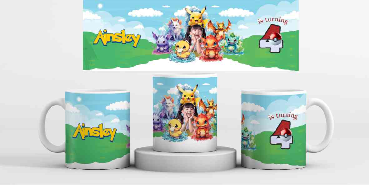 Mug souvenir ulang tahun bertema Pokémon bisa dipenuhi dengan elemen-elemen ikonik dari dunia Pokémon yang ceria dan penuh warna. Beberapa Pokémon pop...