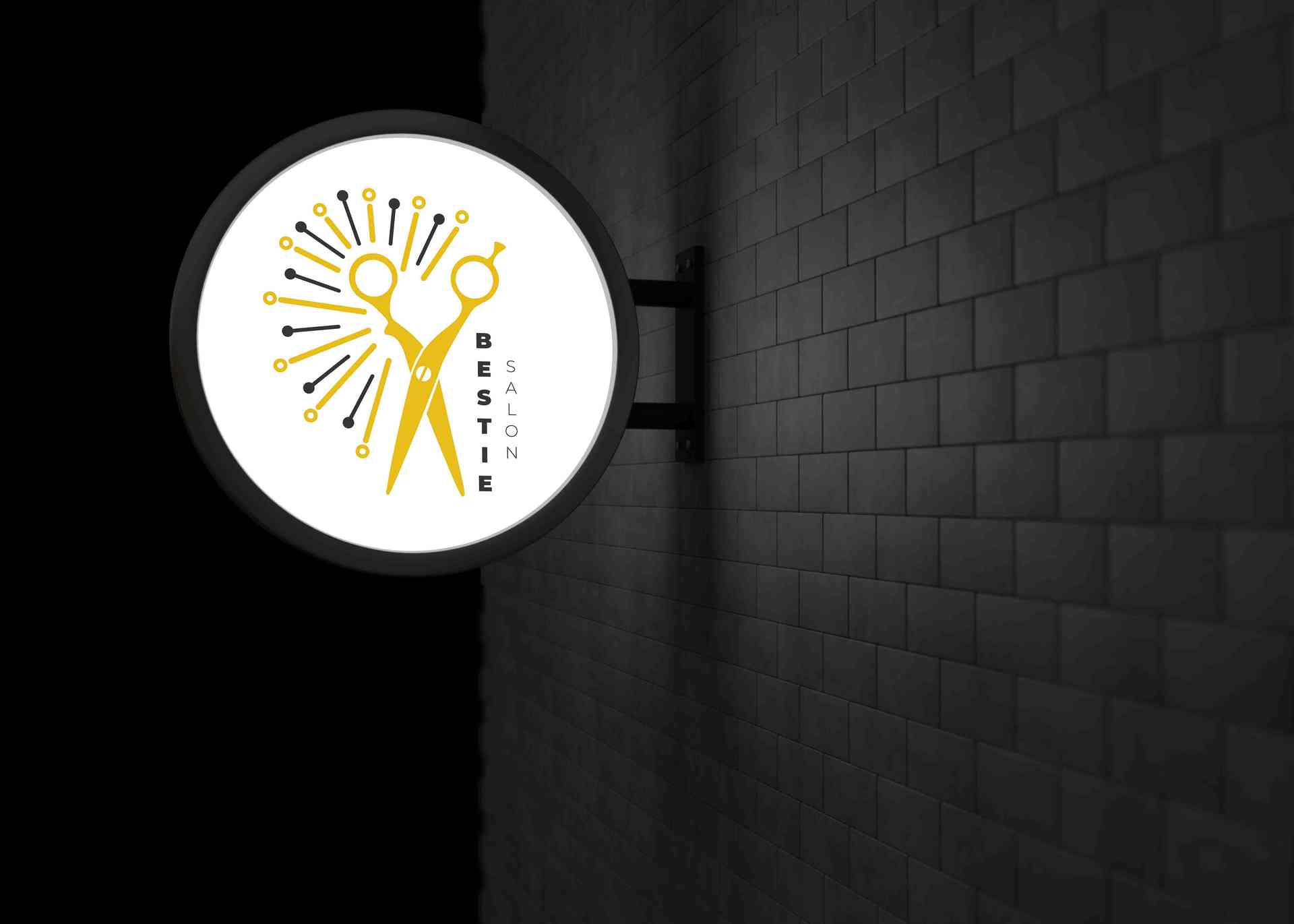 Neon box bulat ini menampilkan desain logo Lovely Salon yang elegan dan modern. Dengan latar belakang kuning cerah, logo ini memadukan elemen gunting...