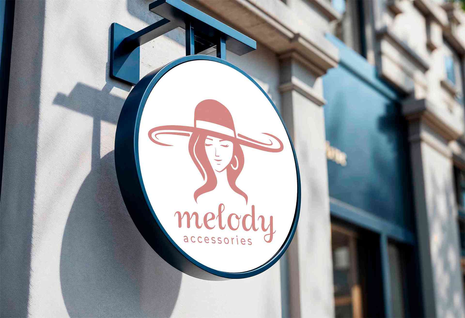 Neon box ini memiliki desain cantik menampilkan ilustrasi wanita dengan topi besar bergaya vintage berwarna soft pink, dilengkapi tulisan “melody acce...