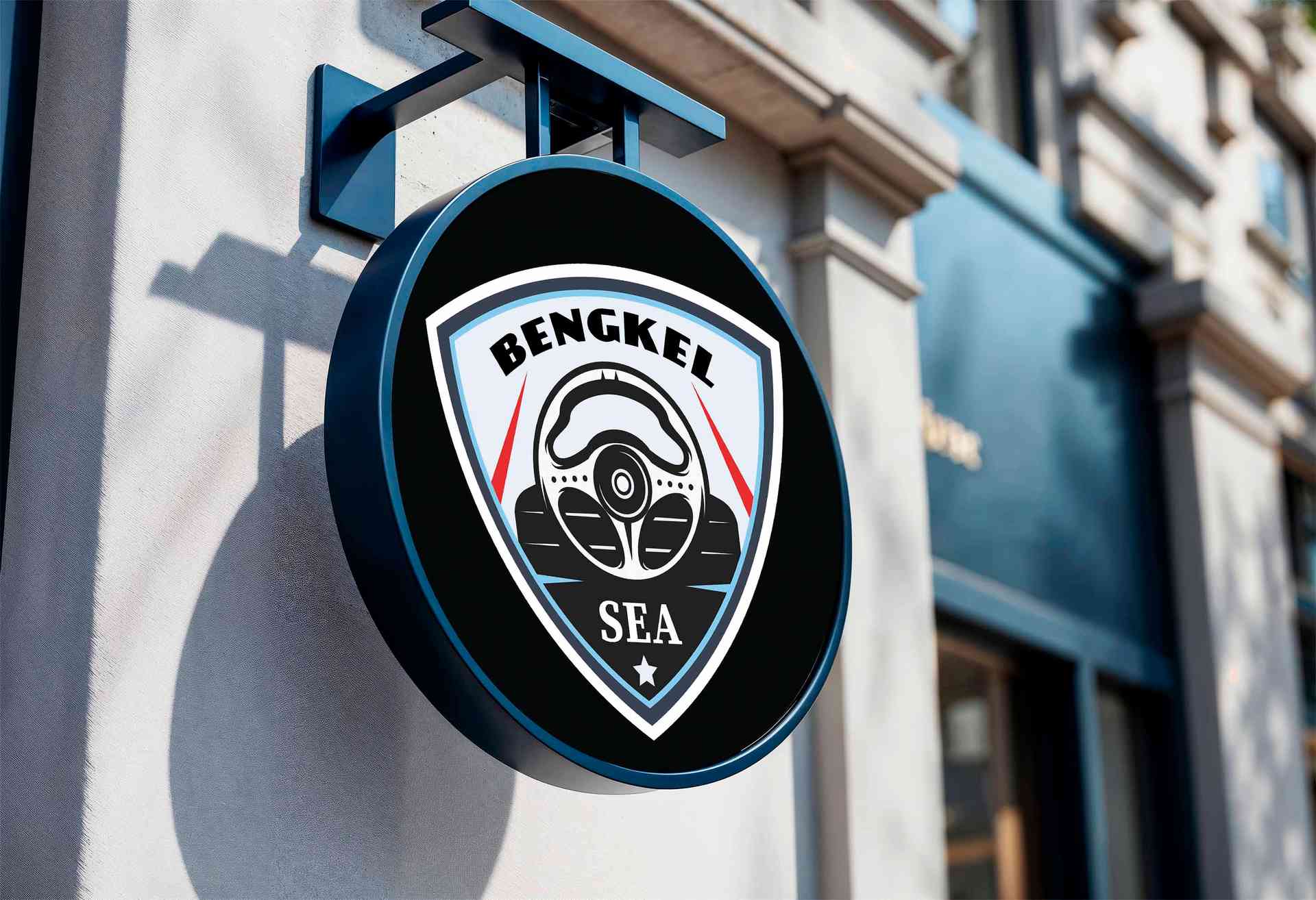 Neon box ini mengusung konsep perisai elegan dengan ikon setir mobil hitam dan putih di tengah, dikelilingi aksen garis merah yang memberikan kesan ke...