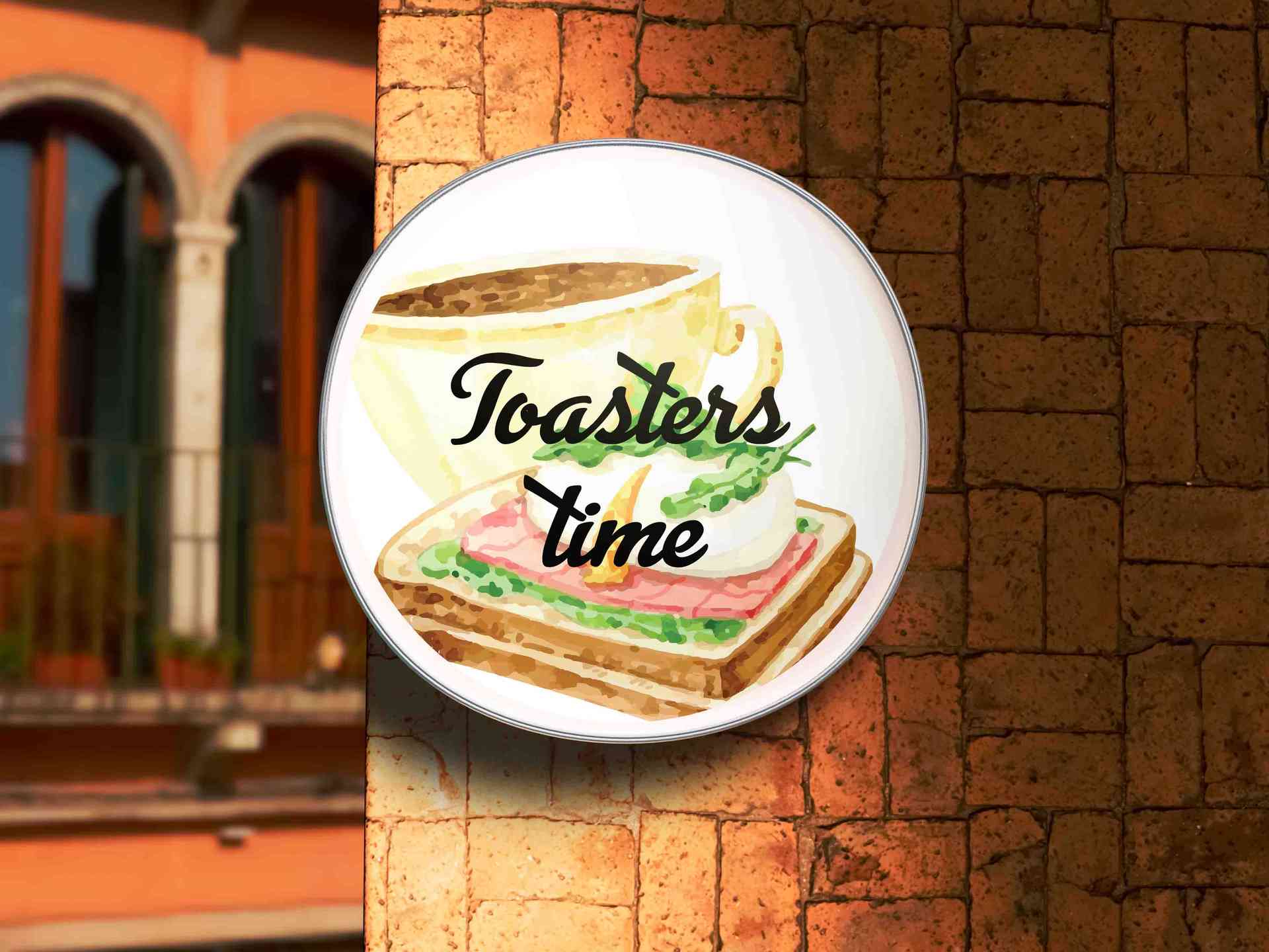 Neon box ini menampilkan ilustrasi bergaya watercolor dari secangkir kopi dan sepotong roti lapis dengan topping sayur dan telur, menciptakan nuansa y...
