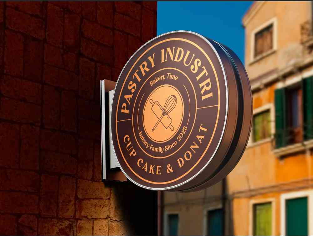 Desain Neon Sign Box ini mengusung nuansa klasik dan kekeluargaan, dengan ilustrasi alat dapur seperti rolling pin dan whisk yang menjadi simbol keahl...