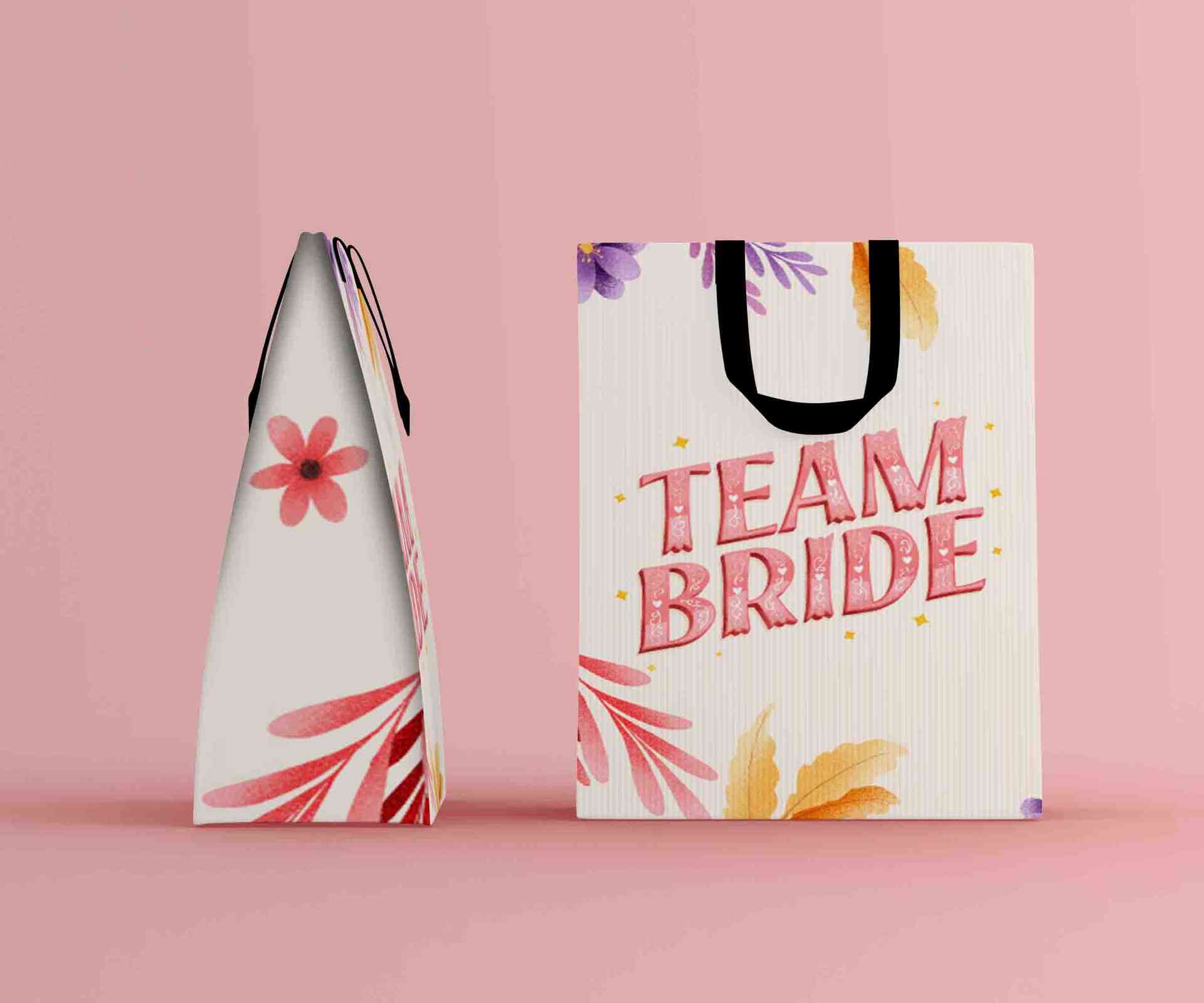 Paper bag ini hadir dengan desain yang anggun dan penuh keceriaan, didedikasikan untuk para bridesmaid tercinta. Dengan latar putih bersih yang dihias...