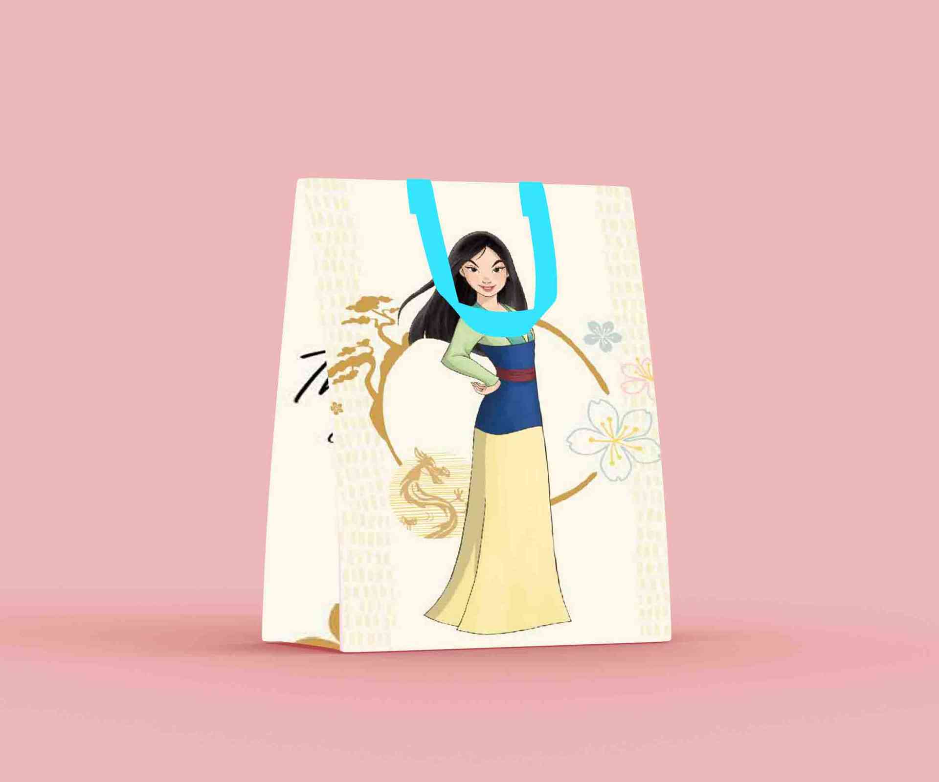 Paper bag ulang tahun ini menampilkan desain elegan dan klasik dengan karakter Mulan yang kuat dan anggun sebagai ikon utama di sisi belakang. Bagian...