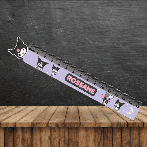 Penggaris karakter Kuromi ungu berukuran 15cm ini berbentuk persegi panjang dengan bagian ujung menampilkan kepala karakter Kuromi yang lucu. Warna do...