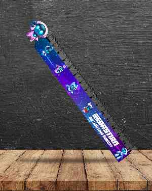 Penggaris ini mengusung tema robot futuristik dengan nuansa biru dan ungu neon yang modern dan menarik. Di sisi kiri terdapat karakter robot utama ber...