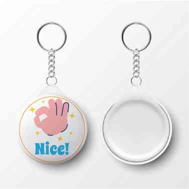 Tambahkan sentuhan gaya unik dengan pin bros bulat ini! Pin ini menampilkan desain menarik dengan ilustrasi tangan berwarna pink yang membentuk gestur "OK" serta tulisan "Nice!" dalam warna biru cerah. Elemen bintang kecil di sekelilingnya memberikan kesan ceria dan playful.
