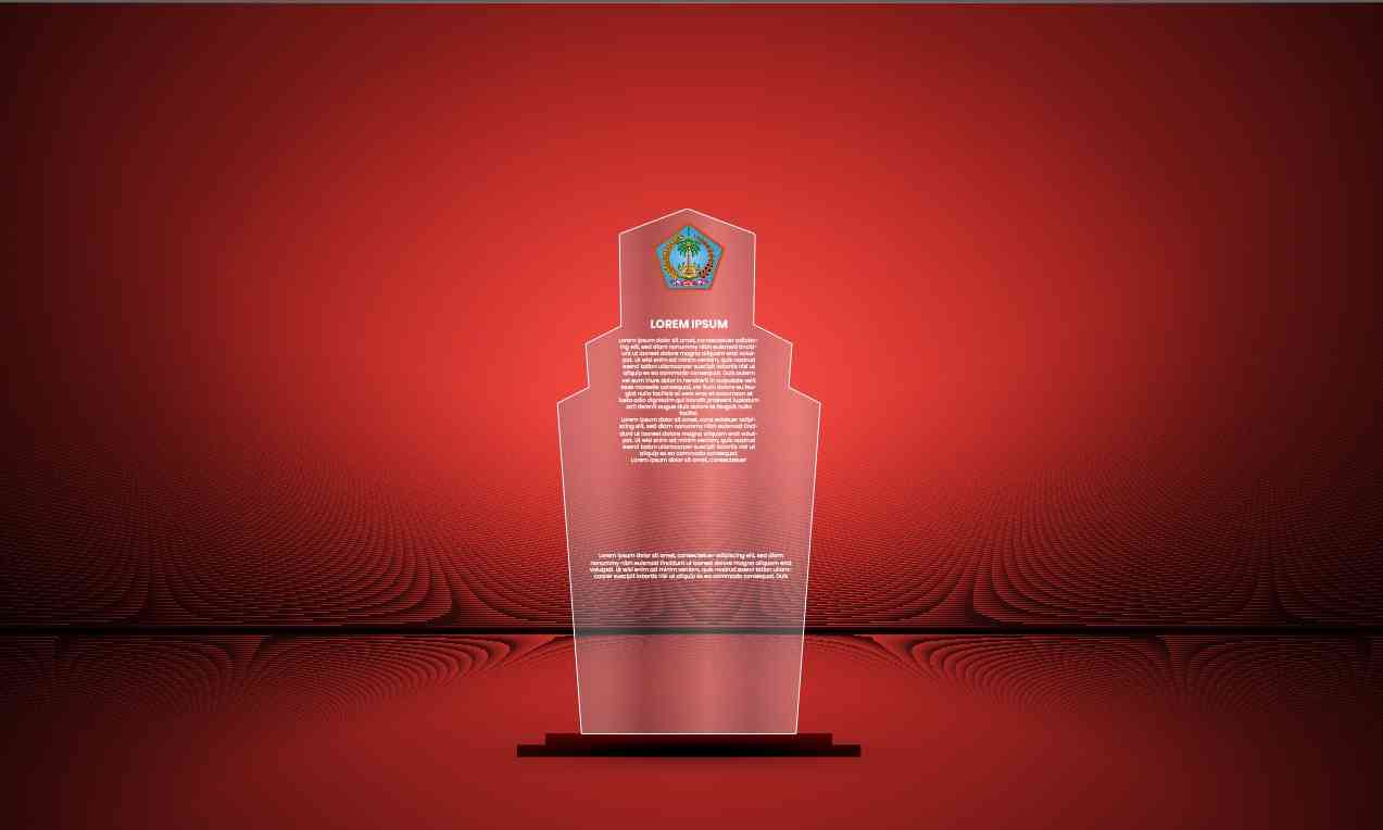 Plakat piagam penghargaan berbahan acrylic ini memiliki bentuk menyerupai gunungan wayang atau keris, menonjolkan ornamen etnik pada bagian atasnya de...