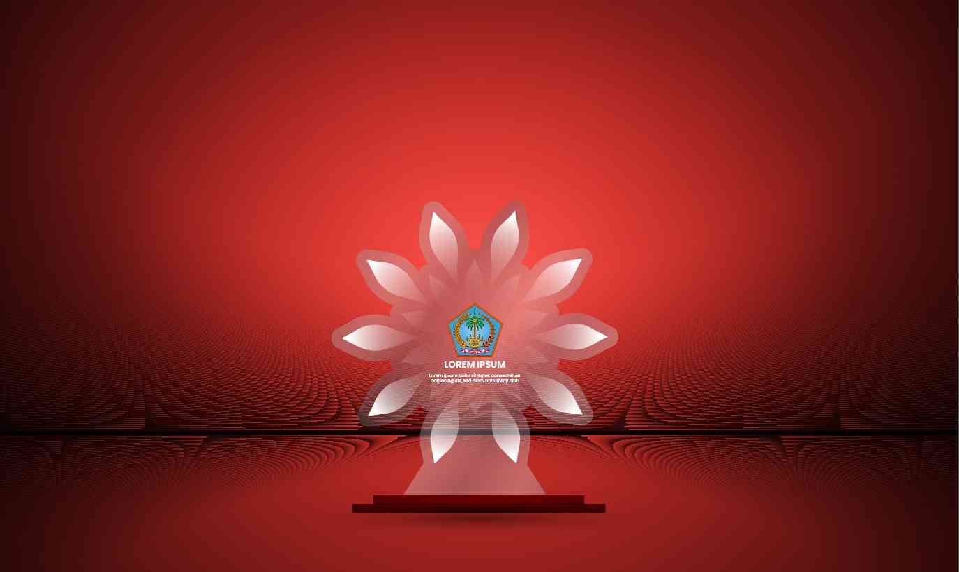 Plakat piagam penghargaan acrylic berbentuk setengah lingkaran dengan desain modern, menampilkan garis-garis bunga dan detail emblem resmi di tengah,...