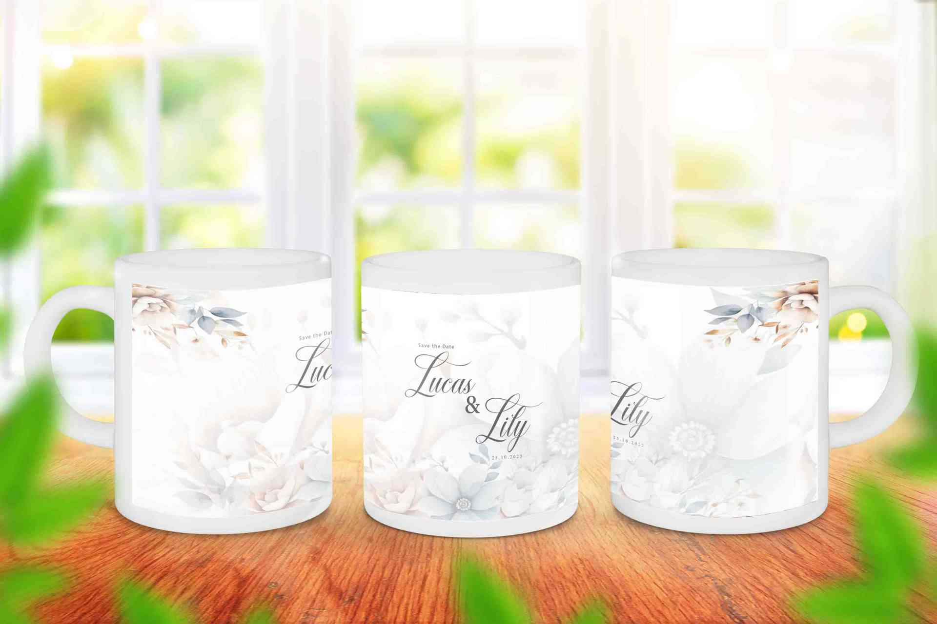 Souvenir pernikahan yang manis dan elegan ini menampilkan desain floral pastel lembut dengan nuansa putih, biru muda, dan krem yang harmonis. Nama pas...