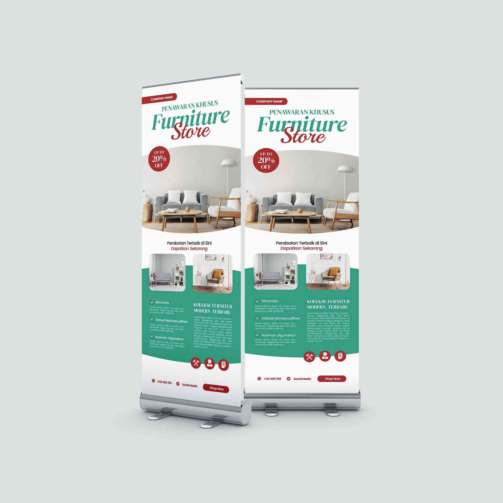 π Roll Up Banner Furniture StoreRoll Up Banner ini dirancang dengan struktur yang kokoh dan rapi, cocok untuk ditempatkan di pintu masuk toko, booth...
