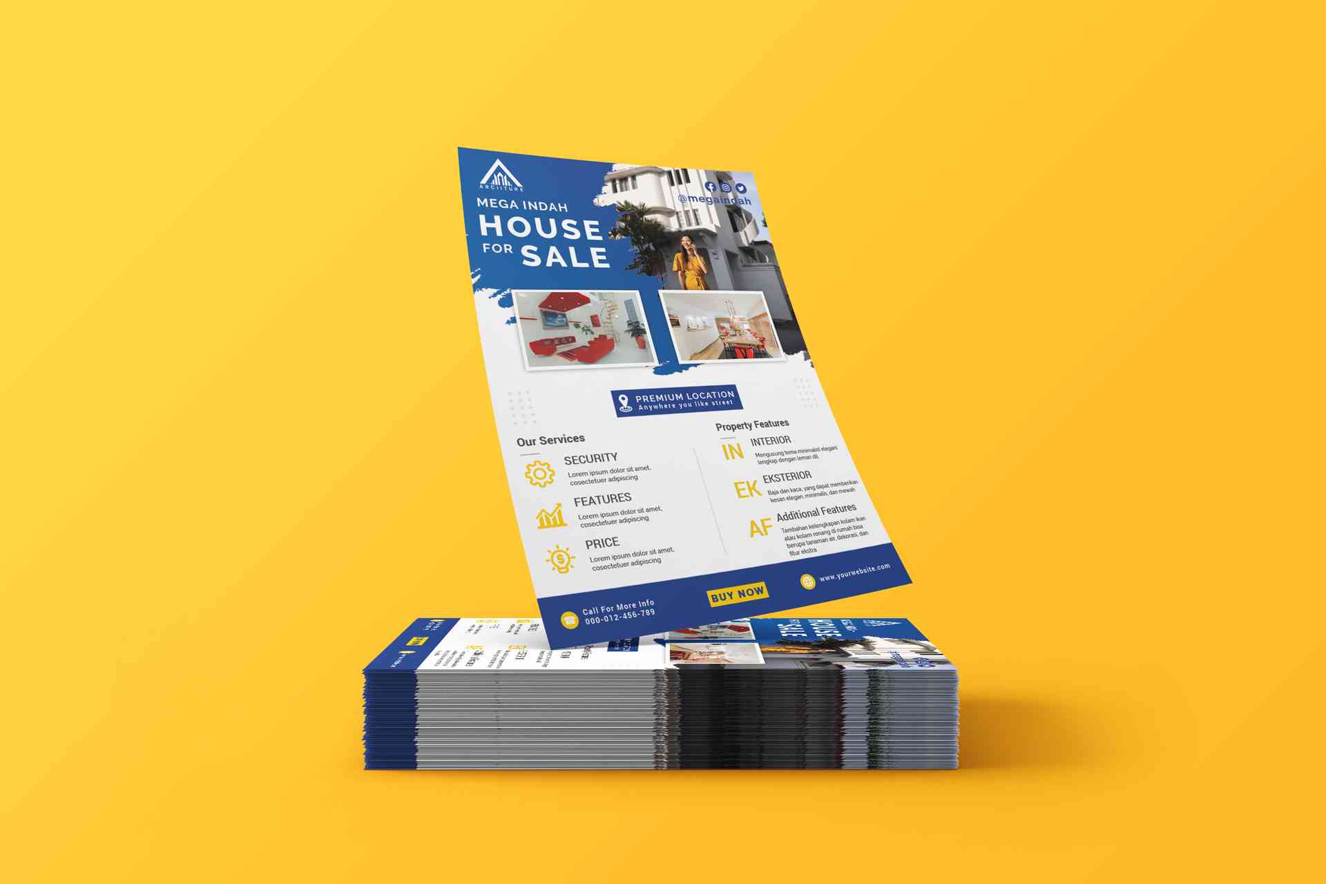 Flyer ini dirancang dengan tampilan profesional dan modern untuk mempromosikan perumahan "Mega Indah House". Menggunakan warna biru dan putih sebagai...
