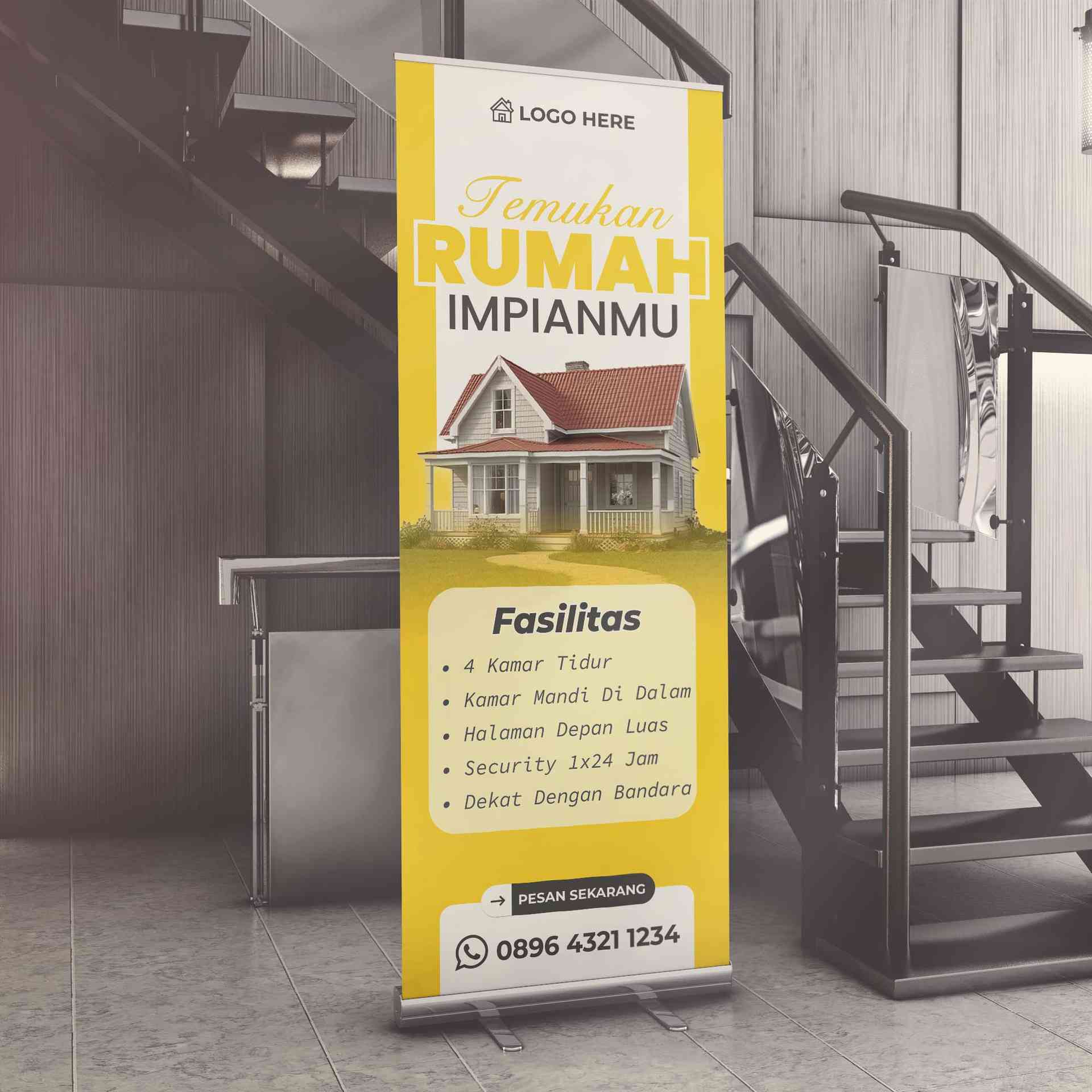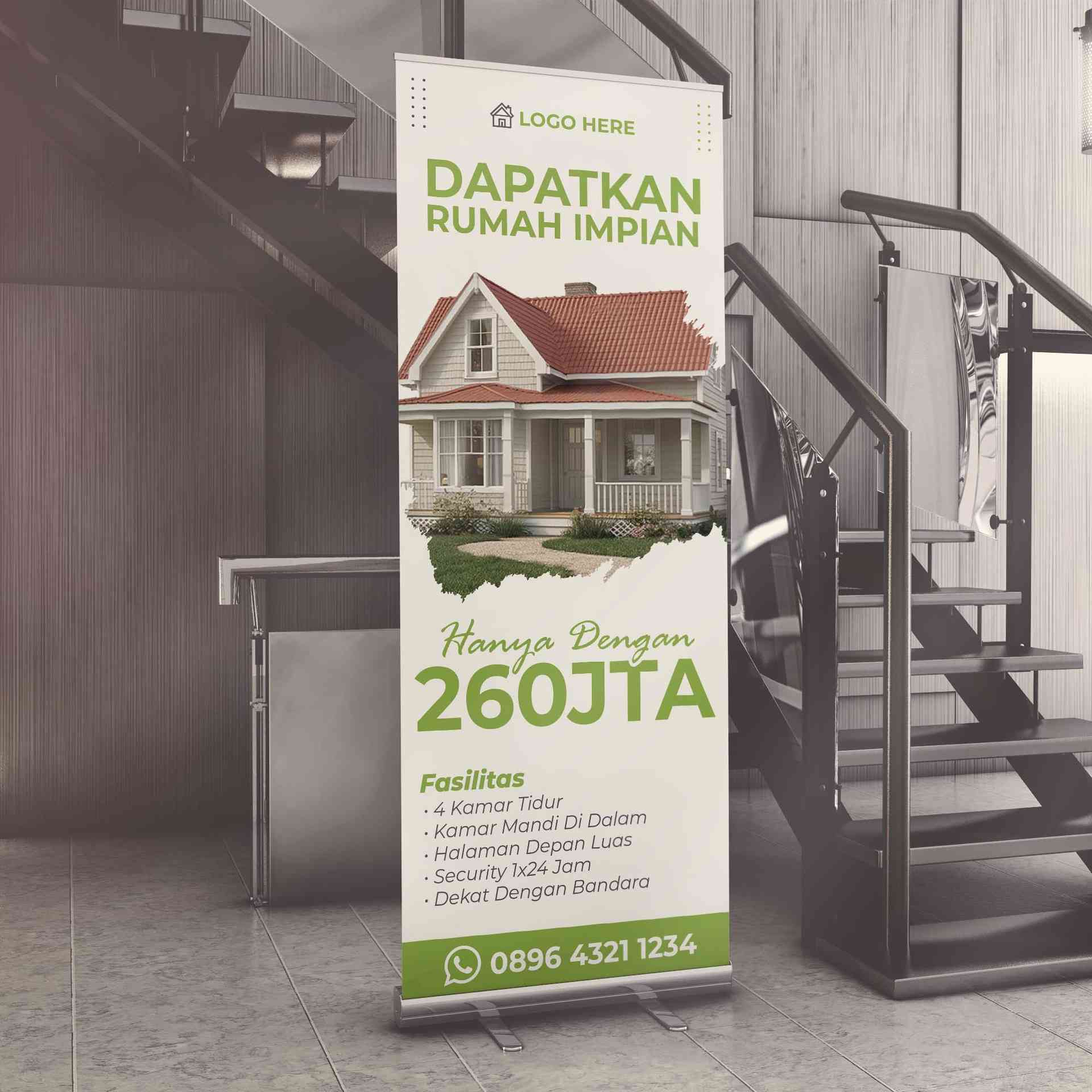 Desain banner ini dirancang untuk menarik perhatian calon pembeli rumah impian dengan gaya yang bersih dan profesional. Fokus utama adalah pada gambar...
