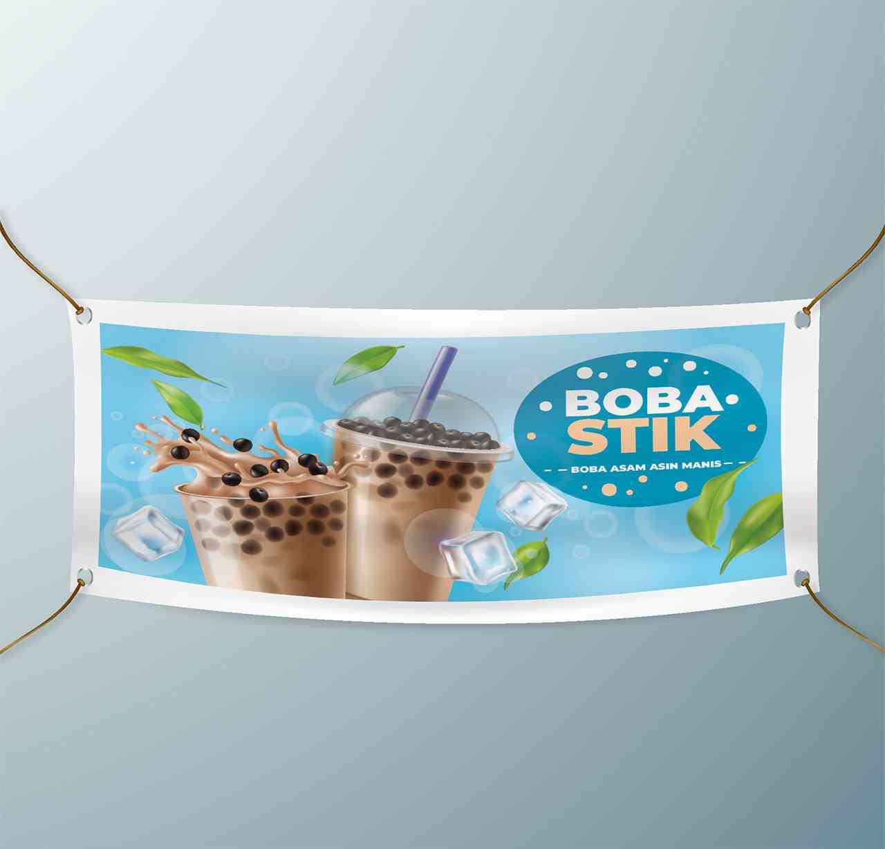 Baliho ini dirancang untuk mempromosikan Bobastik, minuman segar dengan boba asam manis. Menampilkan gambar dua gelas boba yang disertai dengan es bat...