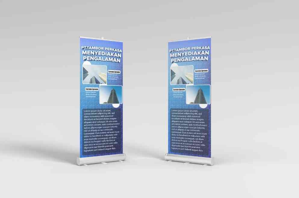 Desain banner ini mengusung konsep minimalis dengan kombinasi warna netral yang elegan. Fitur gambar furnitur yang stylish dan lampu modern menciptakan atmosfer yang nyaman dan mengundang perhatian. Logo perusahaan yang bersih dengan elemen melengkung memberikan sentuhan modern yang menguatkan citra profesional dan stylish. Desain ini sangat cocok untuk perusahaan yang bergerak di bidang desain interior, arsitektur, atau layanan profesional yang ingin menonjolkan keanggunan dalam kesederhanaan.