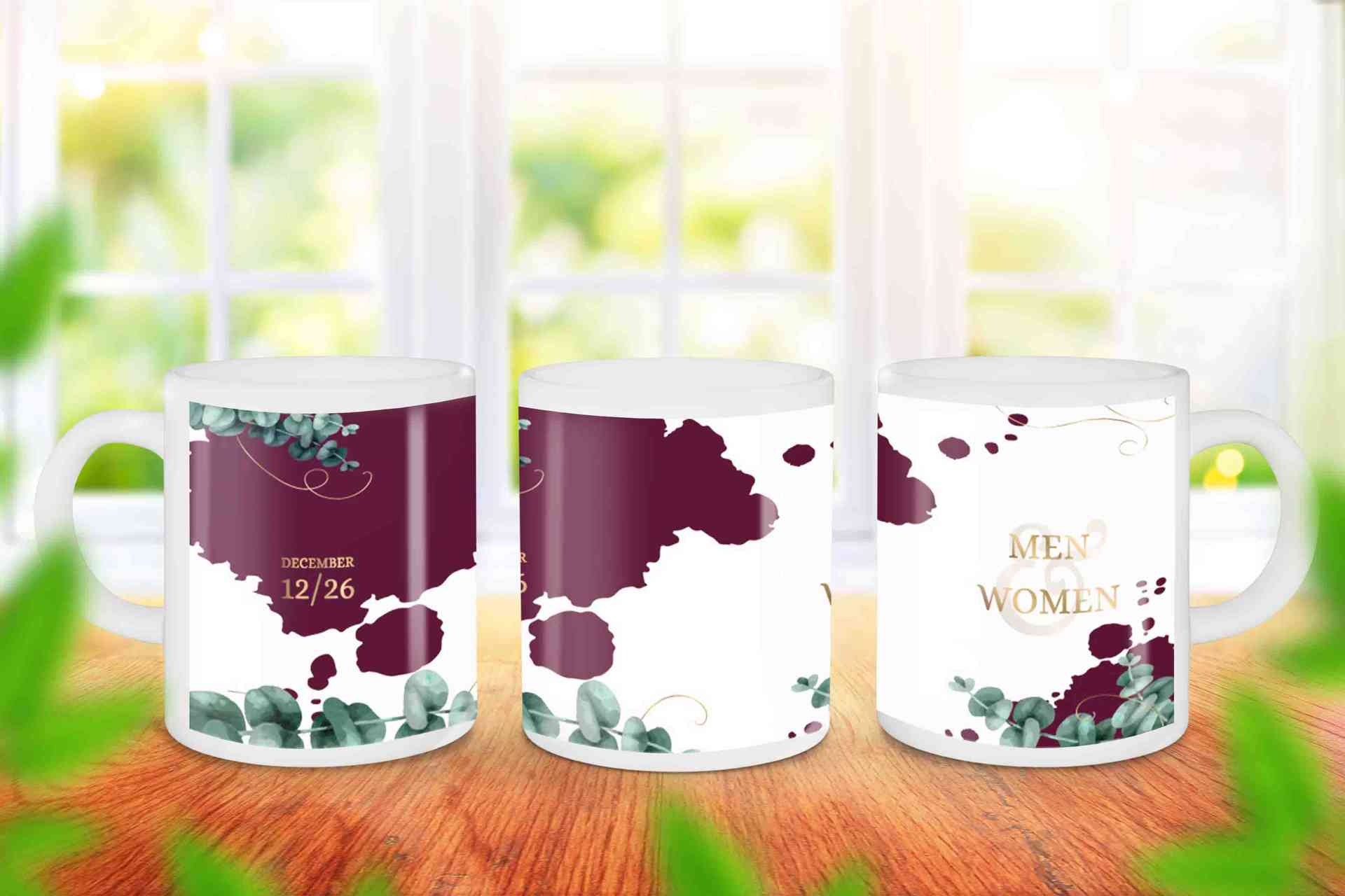 Mug souvenir pernikahan berbentuk silinder ini didesain dengan nuansa floral modern yang elegan, menampilkan dominasi warna putih bersih dengan aksen bunga mawar merah muda dan hijau pada sudut mug. Di bagian tengah terdapat tulisan kaligrafi berwarna merah muda bertuliskan “Pria & Wanita” serta gambar dua cincin, memperkuat tema pernikahan. Tanggal pernikahan tercetak secara minimalis di sudut bawah, menciptakan kesan personal. Mug ini cocok digunakan sebagai hadiah atau kenang-kenangan pernikahan, menarget pasangan pengantin muda dan tamu undangan yang menginginkan souvenir estetis dan fungsional.