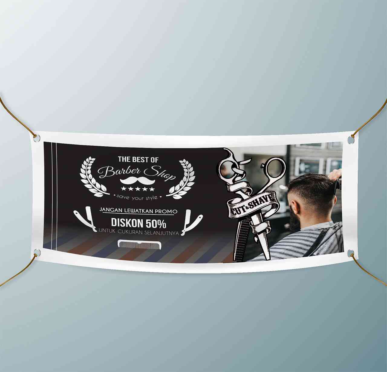 Baliho ini mempromosikan Madura Barbershop, tempat pangkas rambut dengan harga terjangkau hanya Rp20.000. Dengan desain yang modern dan profesional, b...