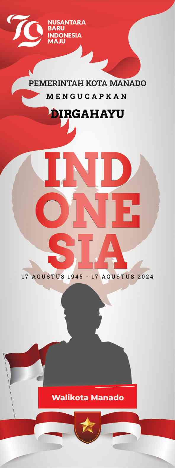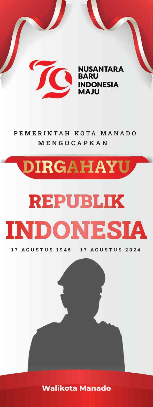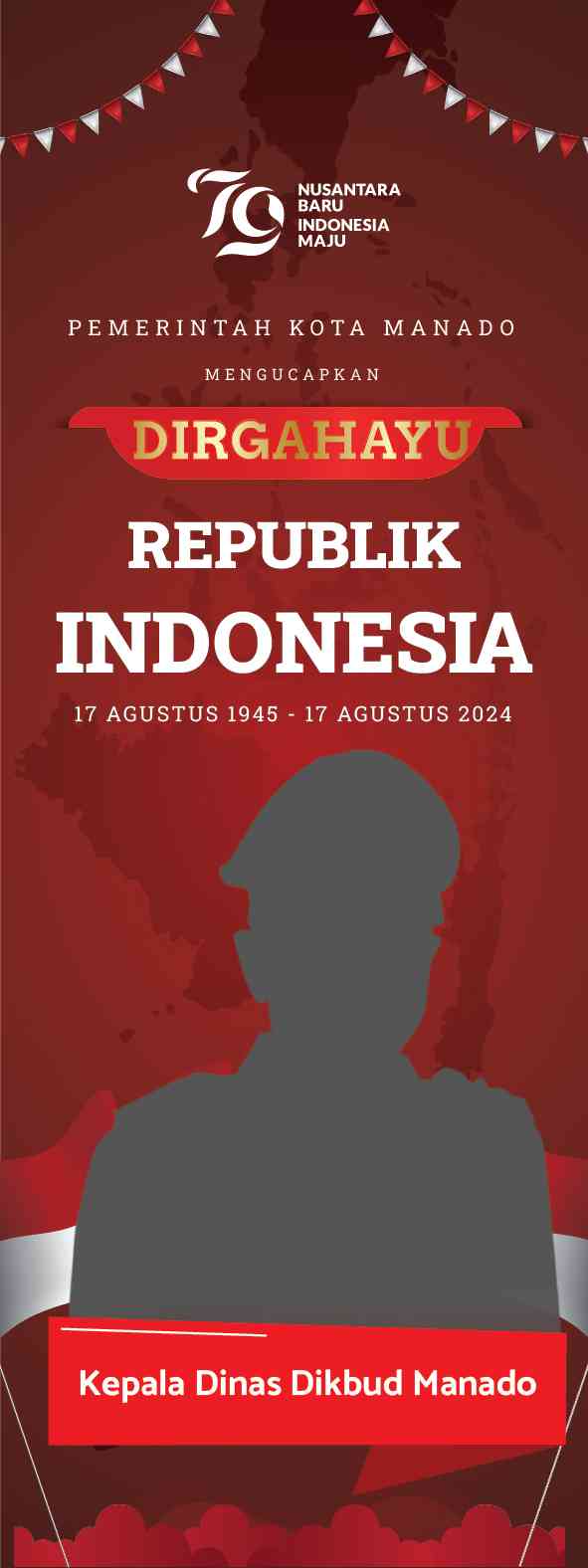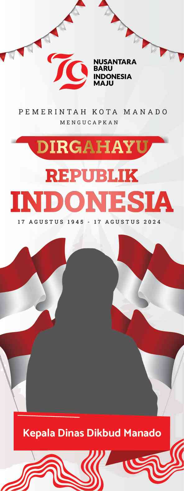 Standing banner ini dirancang dengan tema yang memancarkan semangat persatuan dan harapan untuk masa depan, menandai peringatan kemerdekaan Republik I...