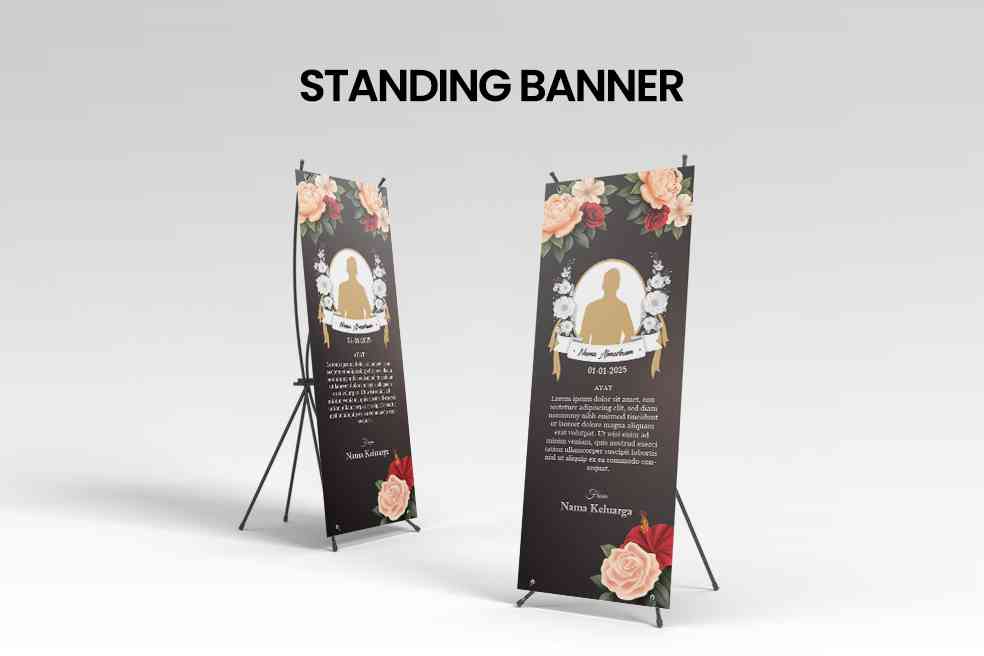 Banner ini adalah standing banner vertikal yang dirancang untuk promosi "Diskon Natal". Desain utamanya memiliki latar belakang berwarna hitam pekat y...