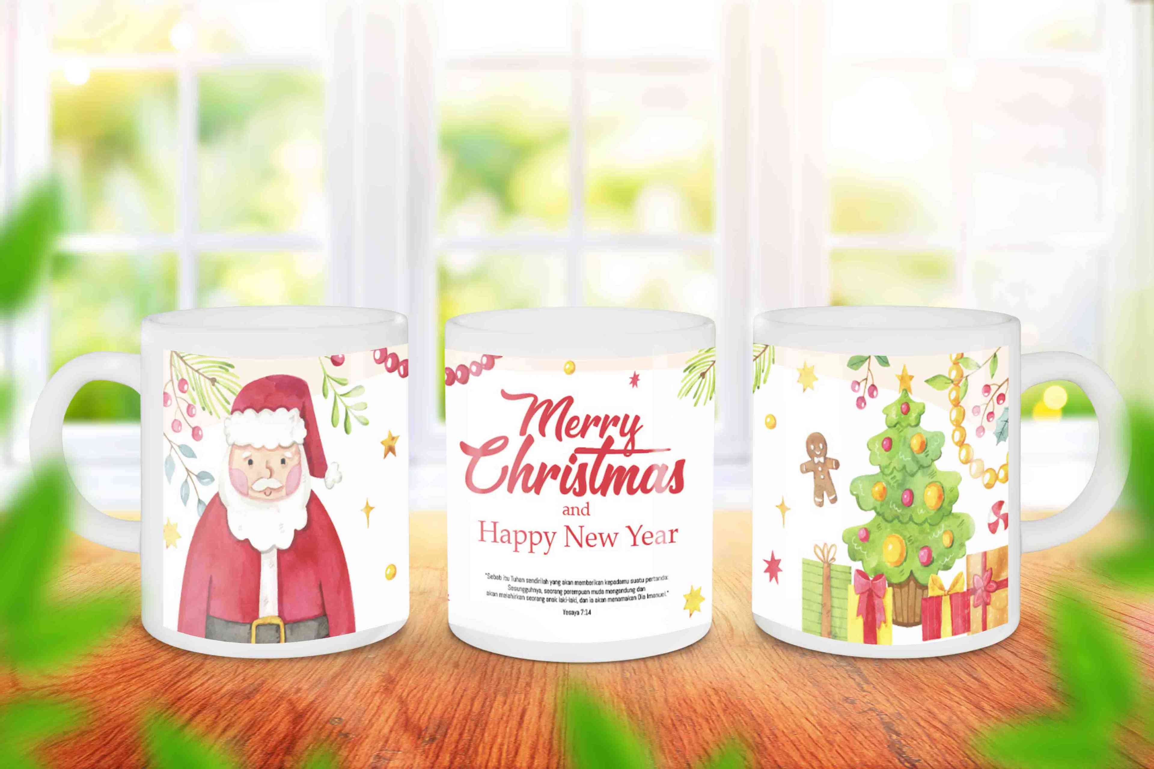 Mug “It Is Time To Celebration Merry Christmas” berbentuk silinder dengan pegangan klasik, didominasi warna putih dengan elemen desain grafis sederhan...