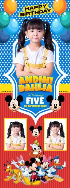 Standing banner Mickey Mouse ini menghadirkan keceriaan penuh dengan karakter-karakter ikonik dari dunia Disney. Di bagian atas, Mickey Mouse tersenyu...