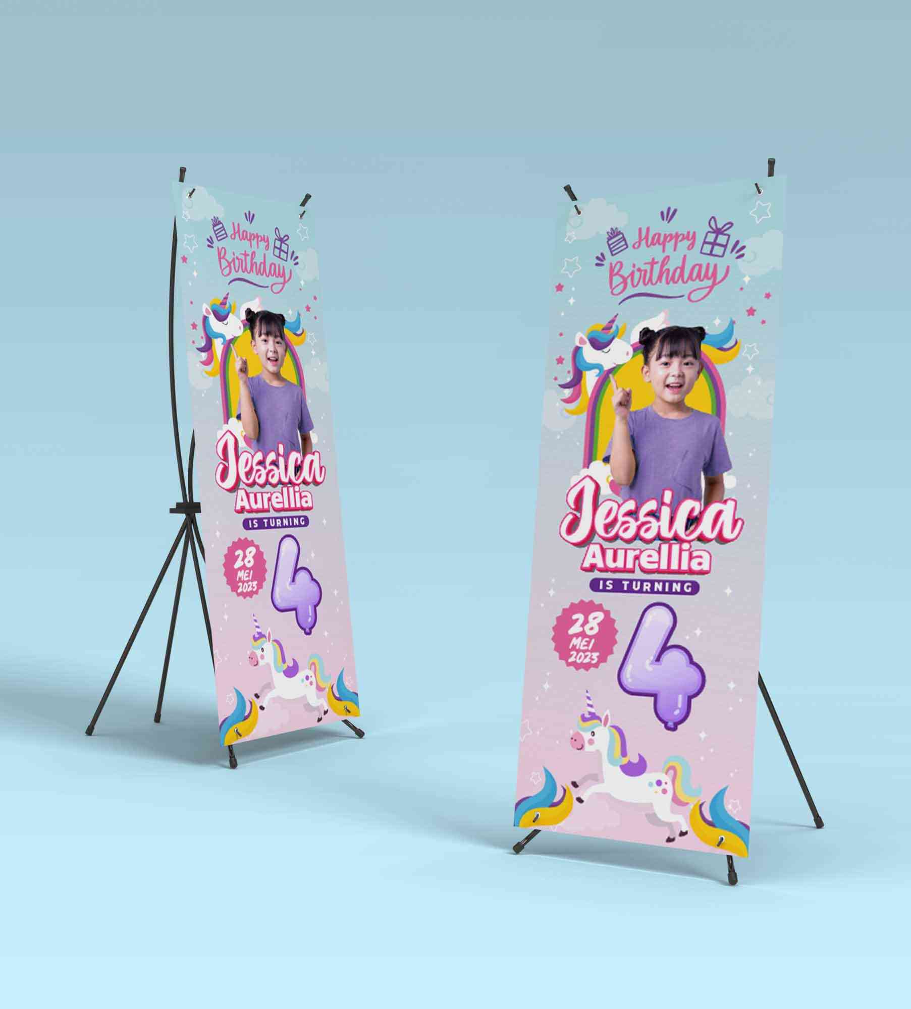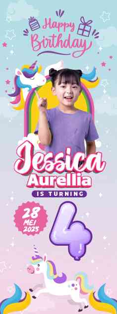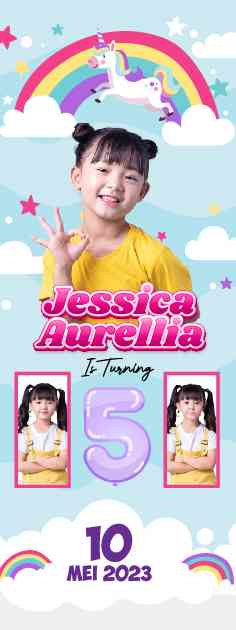 Mari merayakan ulang tahun dengan keajaiban dan pesona ala unicorn! Di dalam dunia yang penuh warna-warni ini, tamu-tamu akan disambut oleh dekorasi yang memukau, mulai dari balon berbentuk tanduk unicorn yang mengambang di udara hingga lapisan warna pelangi yang memenuhi ruangan. Sentuhan magis dari bunga-bunga berkilauan dan bendera-bendera berbentuk ekor unicorn akan menambahkan nuansa dongeng yang mengagumkan. Dengan meja yang dihiasi dengan detail-detail khas unicorn, seperti piring dan gelas bertema, serta kue ulang tahun yang dipenuhi dengan warna-warni dan kilauan, setiap detik ulang tahunmu akan dipenuhi dengan kegembiraan. Jangan lupa untuk menambahkan aktivitas-aktivitas kreatif seperti permainan mencari harta karun berbentuk tanduk unicorn atau menghias topi tanduk untuk menambah keseruan acara. Dengan tema unicorn yang mengagumkan ini, ulang tahunmu akan menjadi perayaan yang magis dan memikat bagi semua yang hadir!