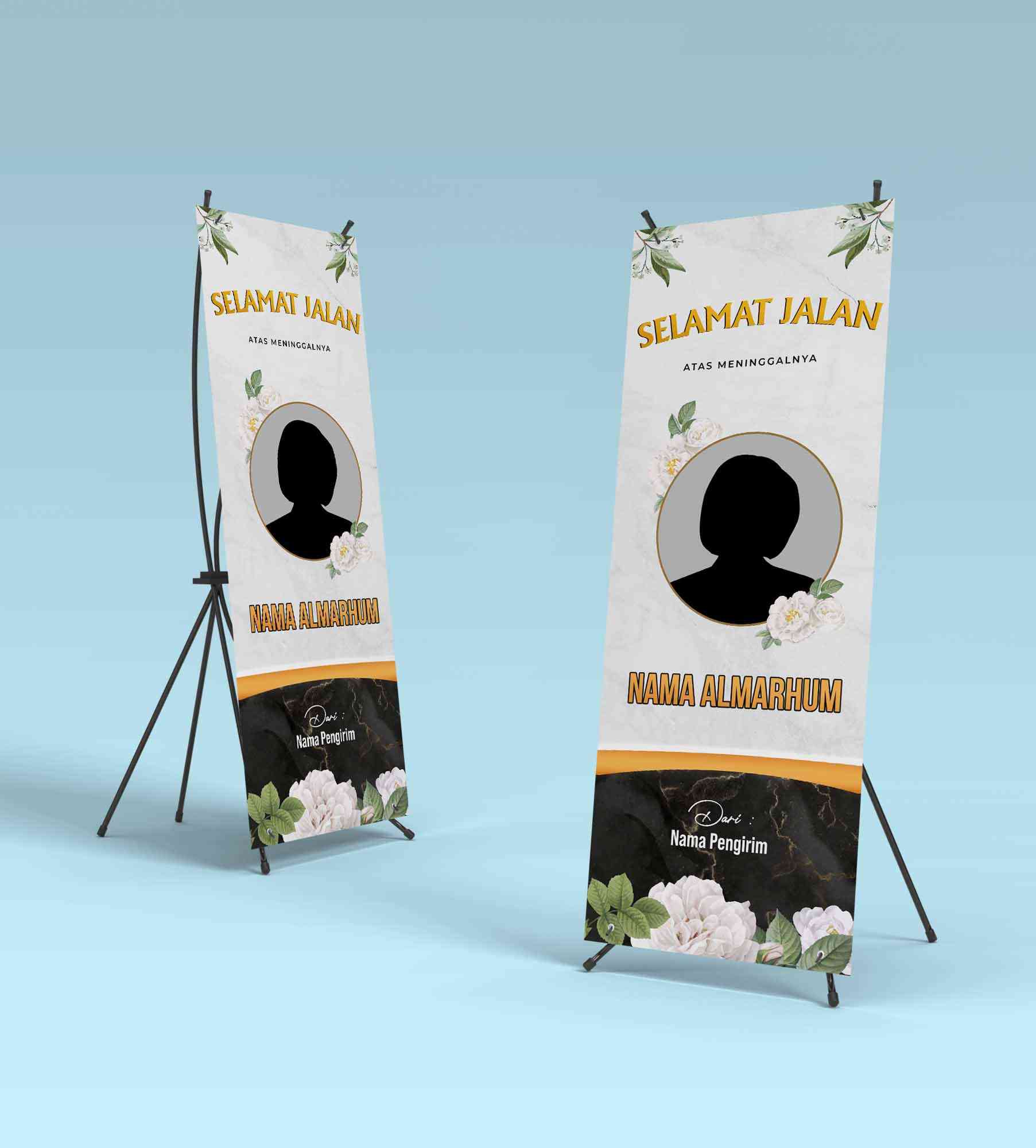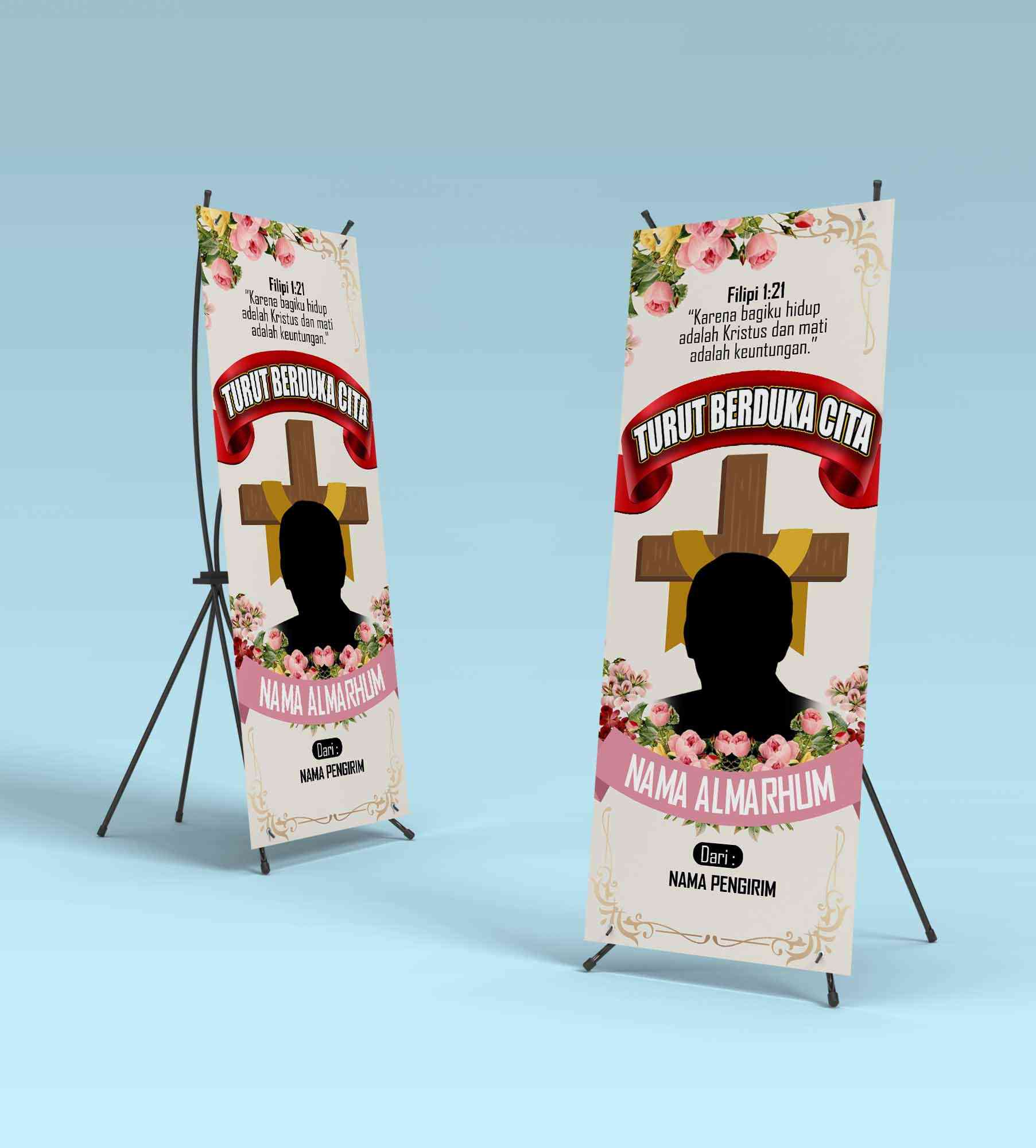 standing banner,turut berduka cita,rip,almarhum/almarhuma
