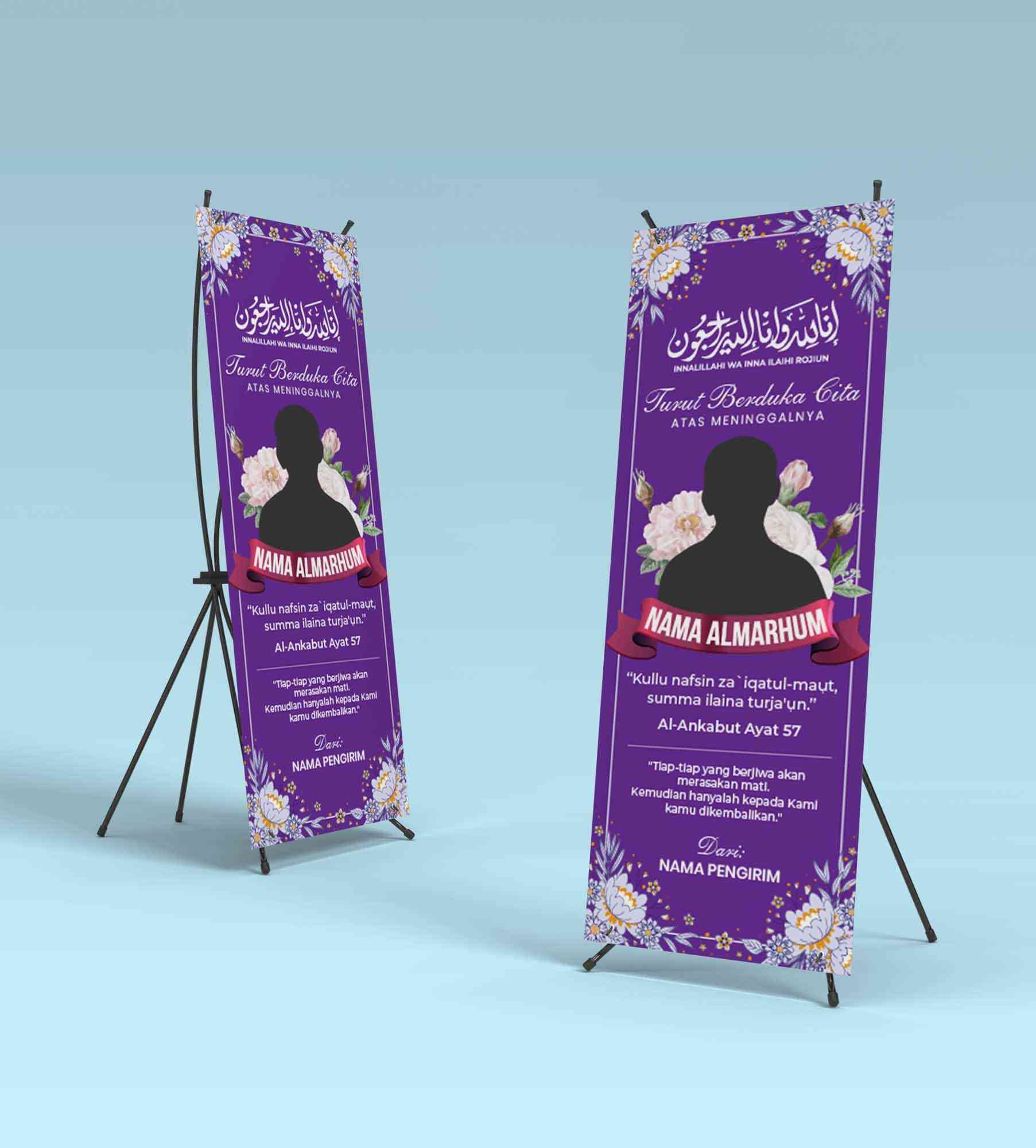 Tema "Kedamaian Abadi" mengusung nuansa yang tenang dan penuh penghormatan untuk mengenang kepergian seseorang dengan elegan dan damai. Banner ini dirancang untuk menciptakan suasana yang menghibur sekaligus penuh ketenangan, mencerminkan rasa duka cita yang mendalam dan doa untuk kedamaian abadi bagi almarhum/almarhumah.