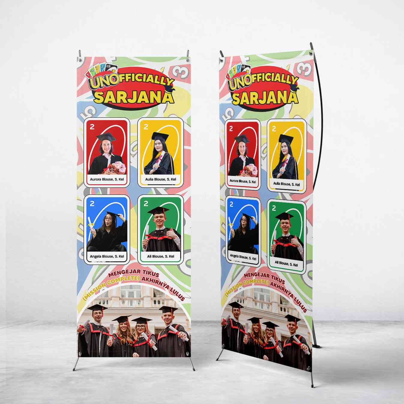 Standing banner ini hadir dengan konsep unik yang terinspirasi dari permainan kartu UNO, membawa nuansa humor dan penuh gaya ke momen kelulusan. Judul...