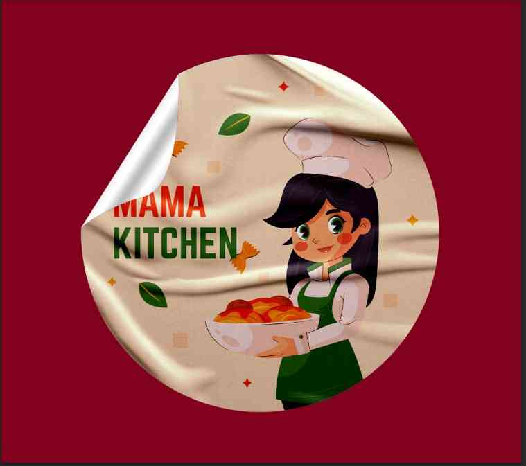 Dengan ilustrasi karakter mama chef yang tersenyum hangat sambil membawa semangkuk makanan, stiker ini menyampaikan kesan ramah, terpercaya, dan penuh...