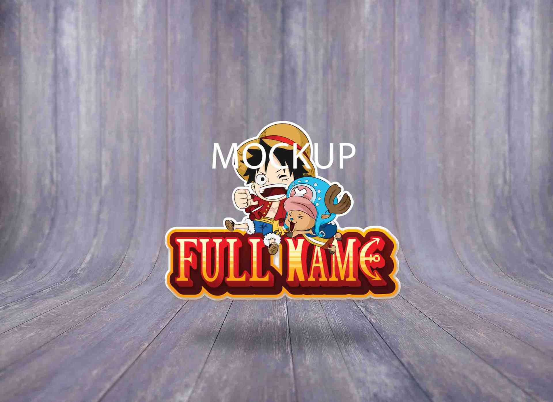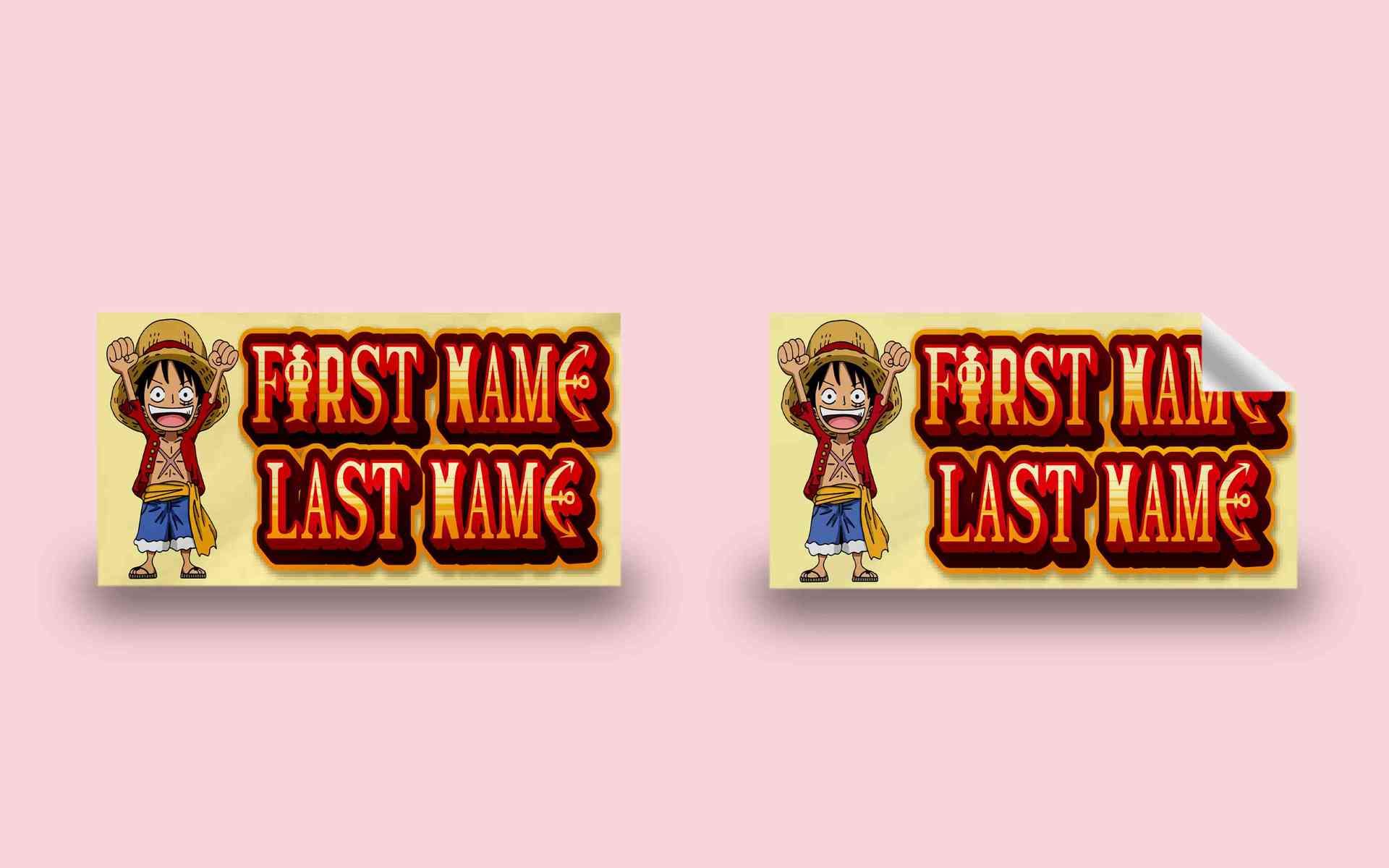 Desain sticker ini menampilkan karakter anime Luffy dari One Piece yang penuh semangat, dengan nama yang menggunakan font besar dan berwarna mencolok....