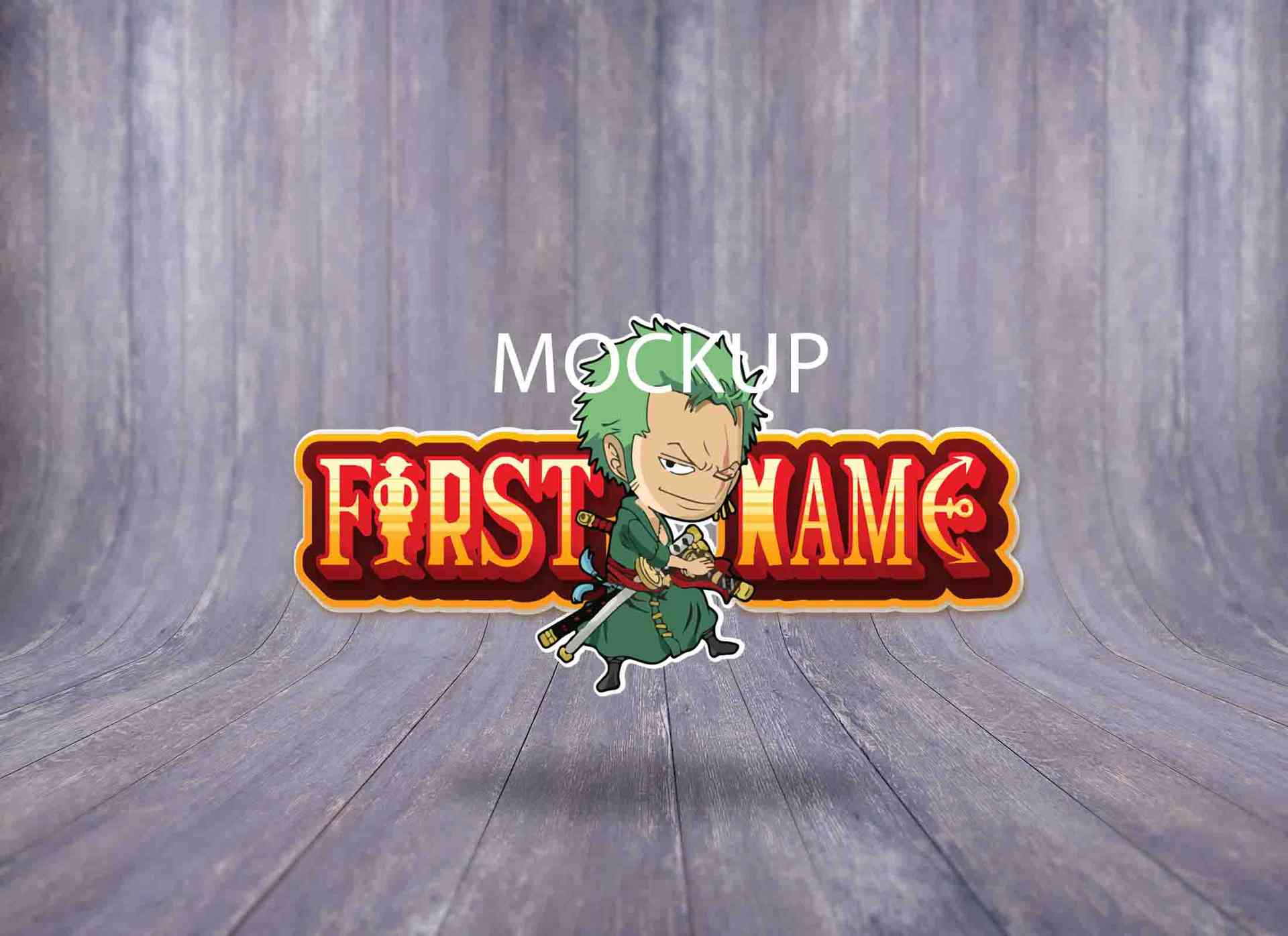 Desain sticker ini menampilkan karakter Zoro dari One Piece yang berkarisma, dengan ekspresi wajah tajam dan menggenggam pedangnya. Teks "FIRST NAME"...