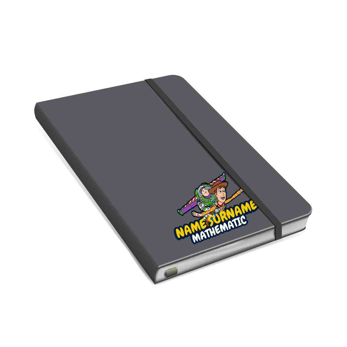 Desain sticker ini menampilkan dua karakter ikonik dari Toy Story, Buzz Lightyear dan Woody, dalam posisi ceria dan penuh semangat. Teks "NAME SURNAME...