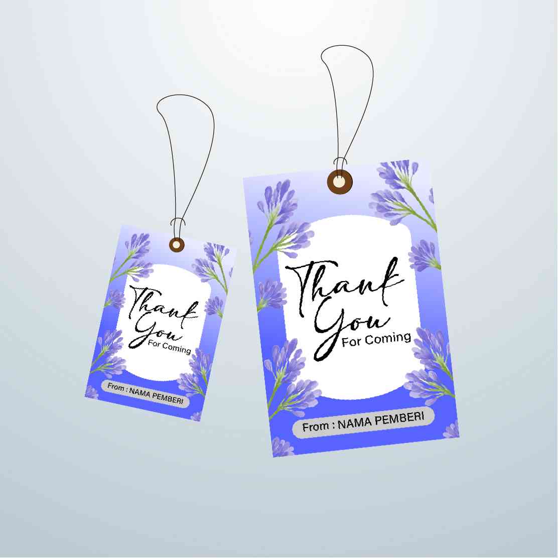 Dibuat dengan nuansa ungu lembut dan dihiasi bunga lavender di setiap sisinya, desain hangtag ini menghadirkan suasana tenang dan menyejukkan. Tulisan...