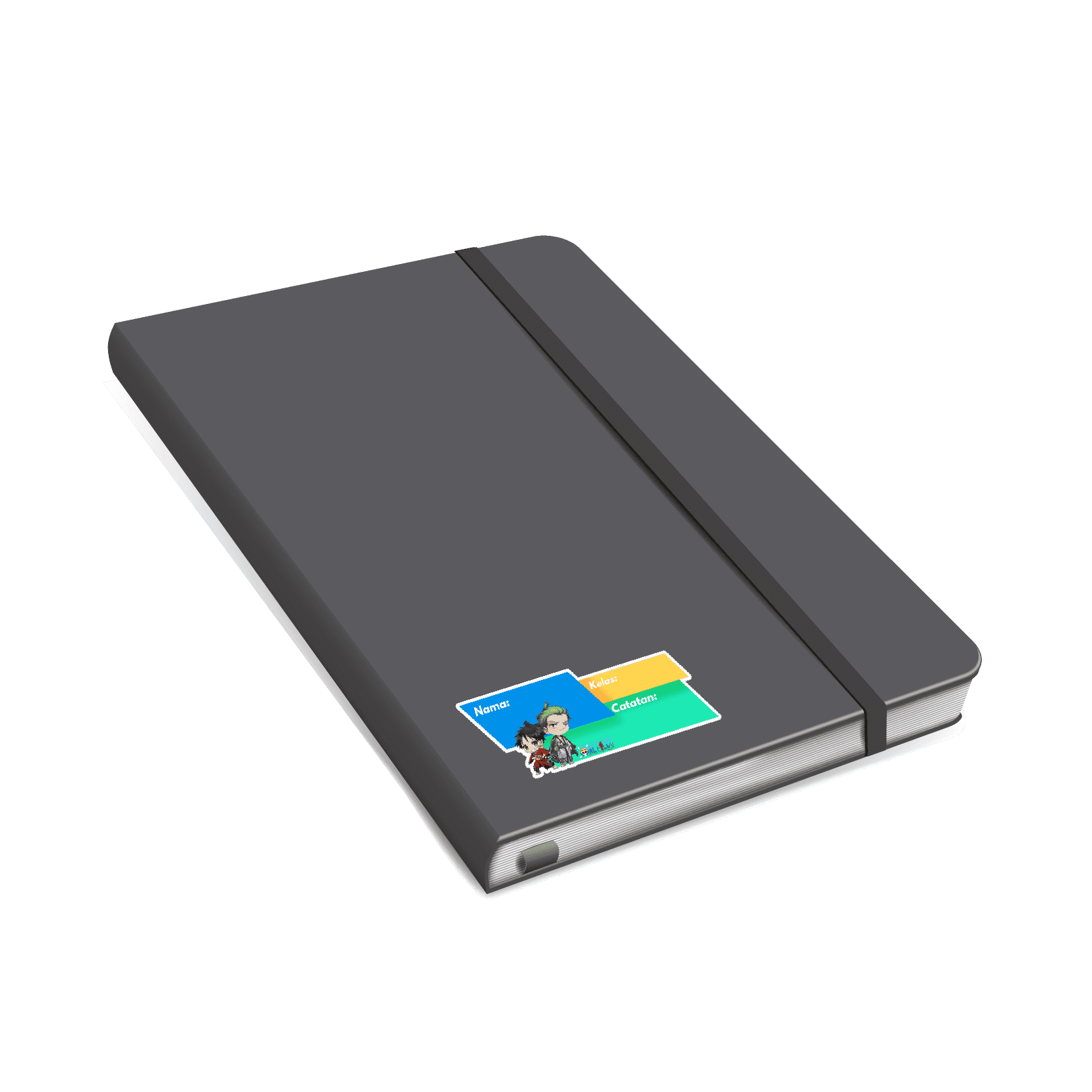 Stiker pada notebook ini menampilkan karakter Eevee yang lucu dengan aksesori mahkota kecil berwarna merah muda, memberikan kesan manis dan menggemask...