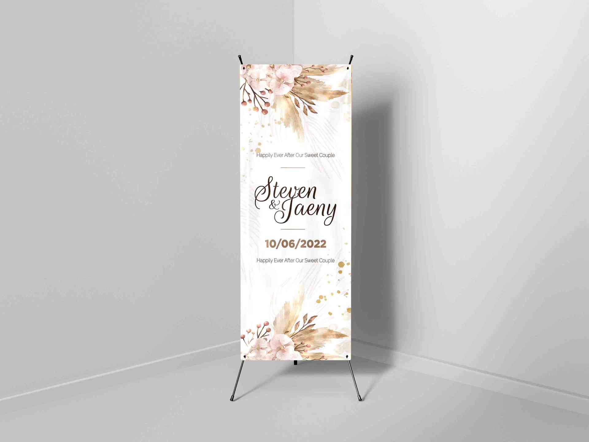 X-banner ini tampil memikat dengan nuansa pastel yang lembut dan elegan. Sentuhan bunga kering bernuansa peach dan beige menghiasi bagian atas dan baw...