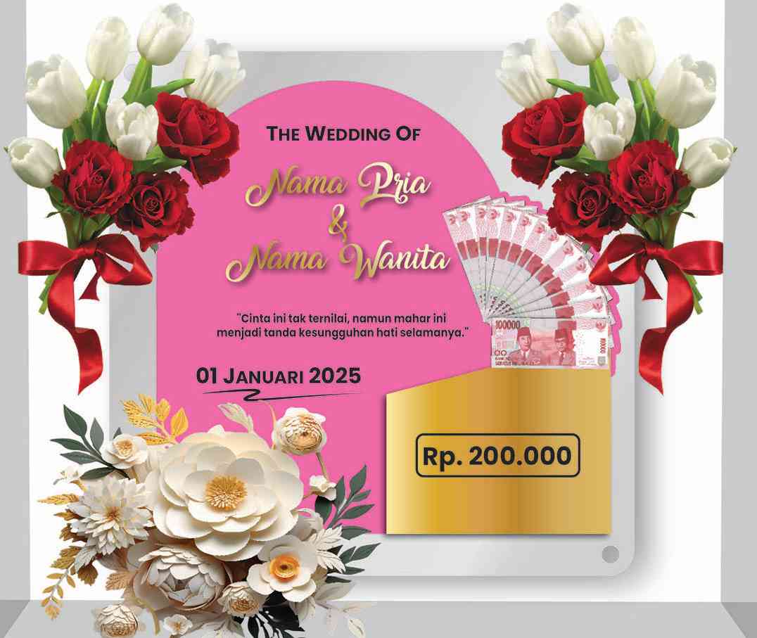 Desain mahar pernikahan dengan elemen-elemen dekoratif yang menarik dan elegan. Berikut adalah deskripsi lengkapnya:Konsep & Tema:Desain ini memil...