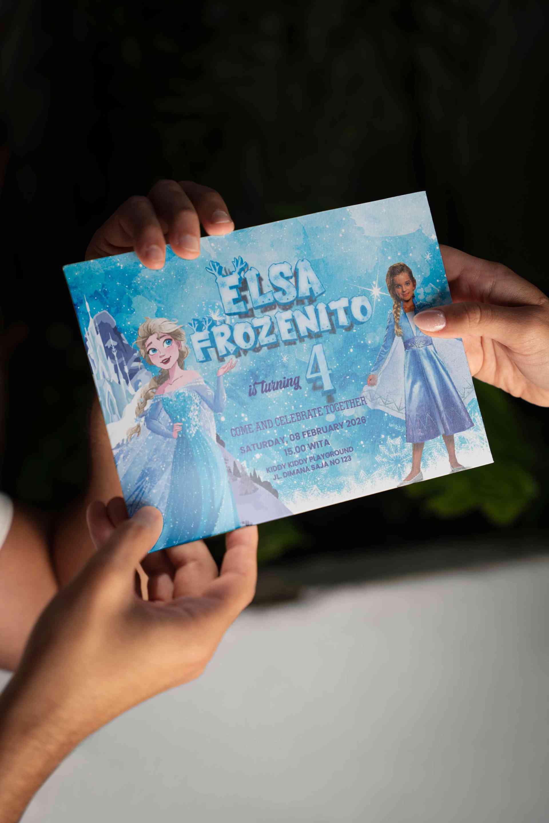 Desain undangan ini mengusung tema musim dingin dengan dominasi warna biru dan putih, menciptakan nuansa magis seperti di dunia es. Latar belakangnya...