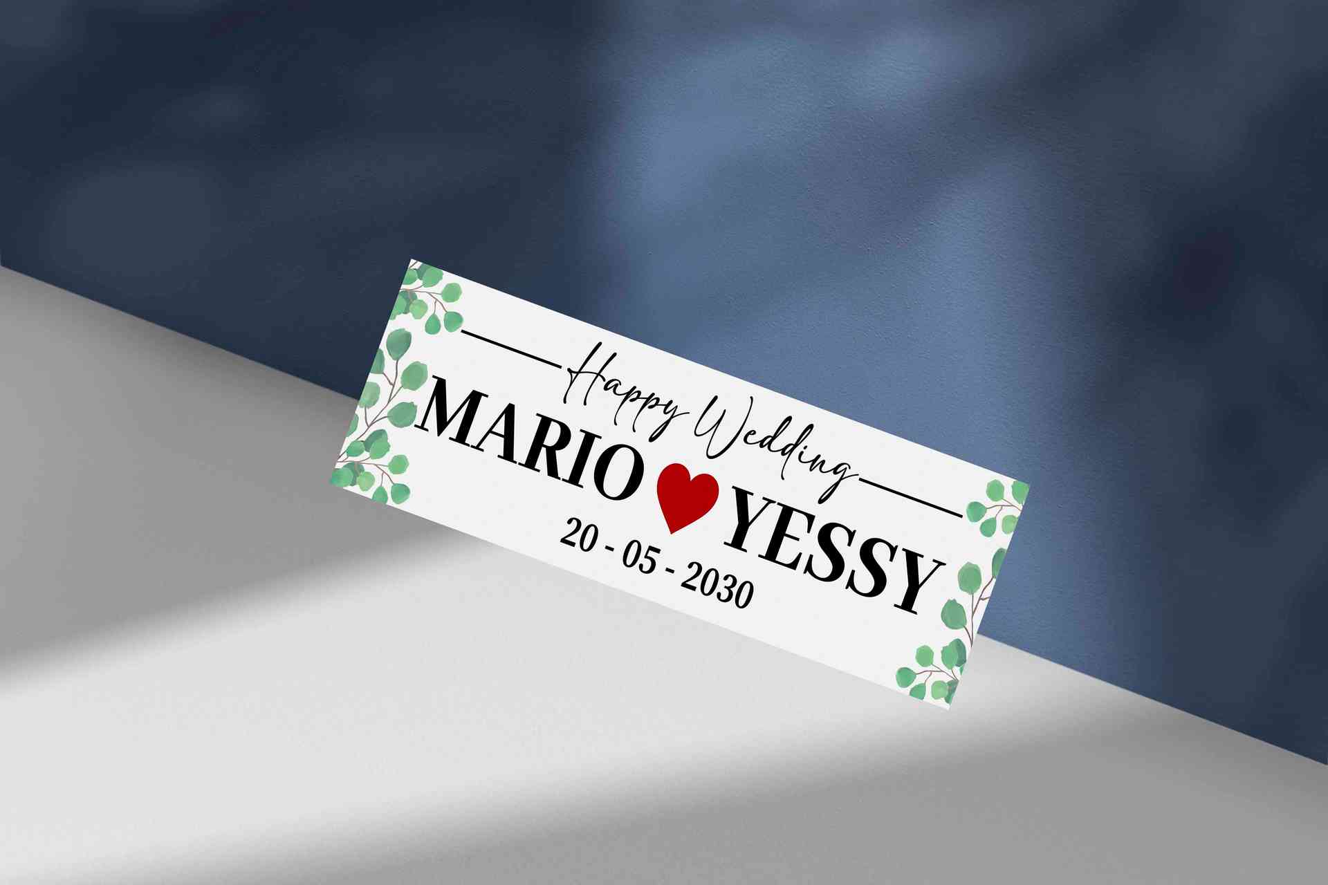 Dengan latar putih bersih dan aksen gelombang biru di kedua sisi, desain ini memancarkan kesan modern dan minimalis. Plat ini cocok untuk pernikahan b...