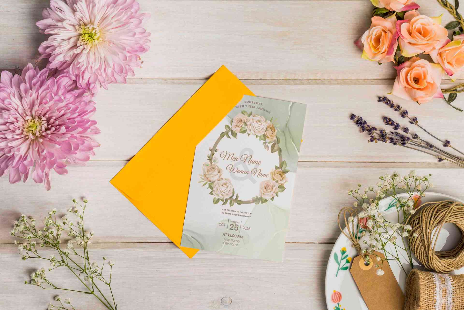 Desain undangan pernikahan ini mengusung gaya floral yang elegan dan romantis dengan sentuhan warna pastel yang lembut. Terdiri dari dua sisi—satu men...