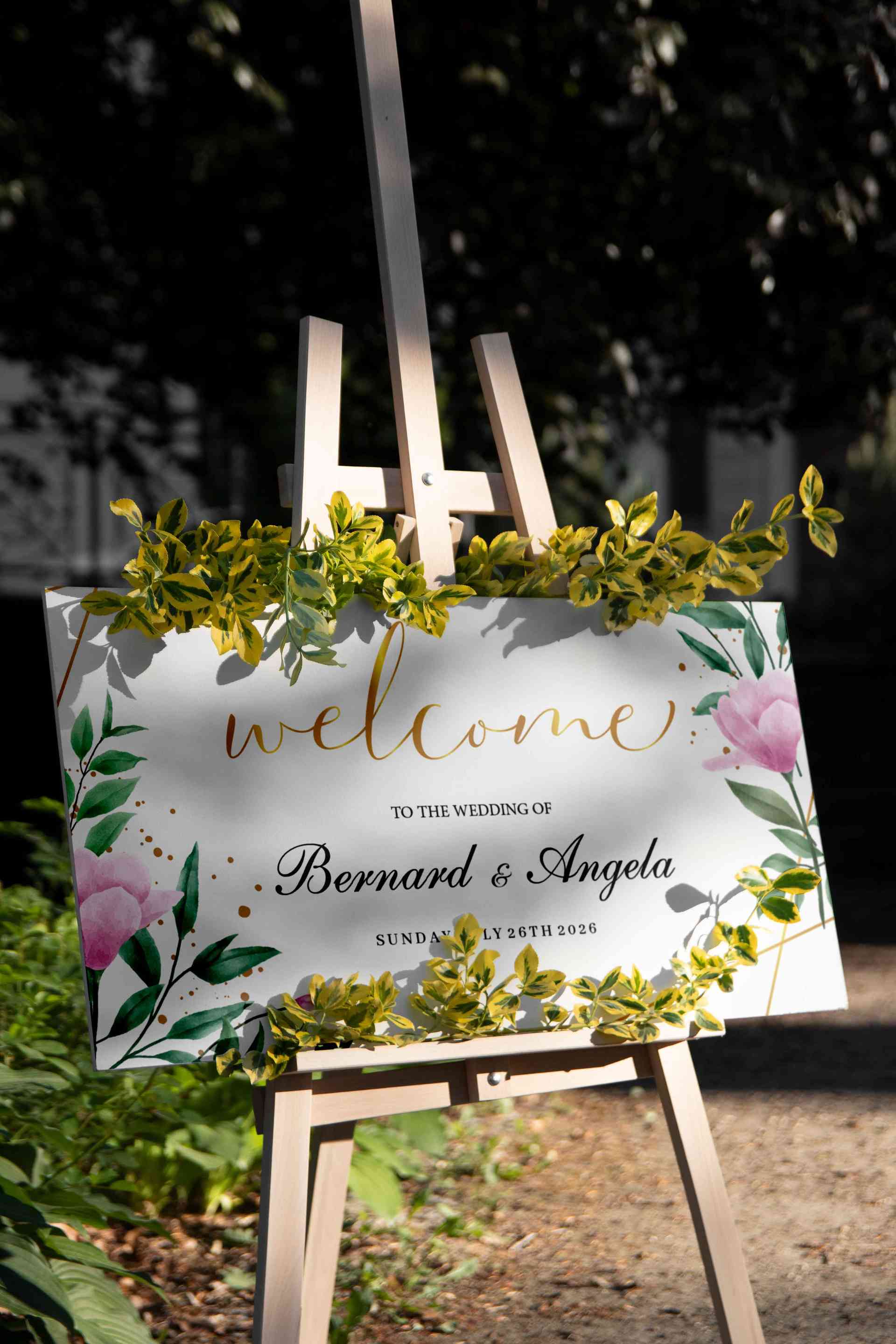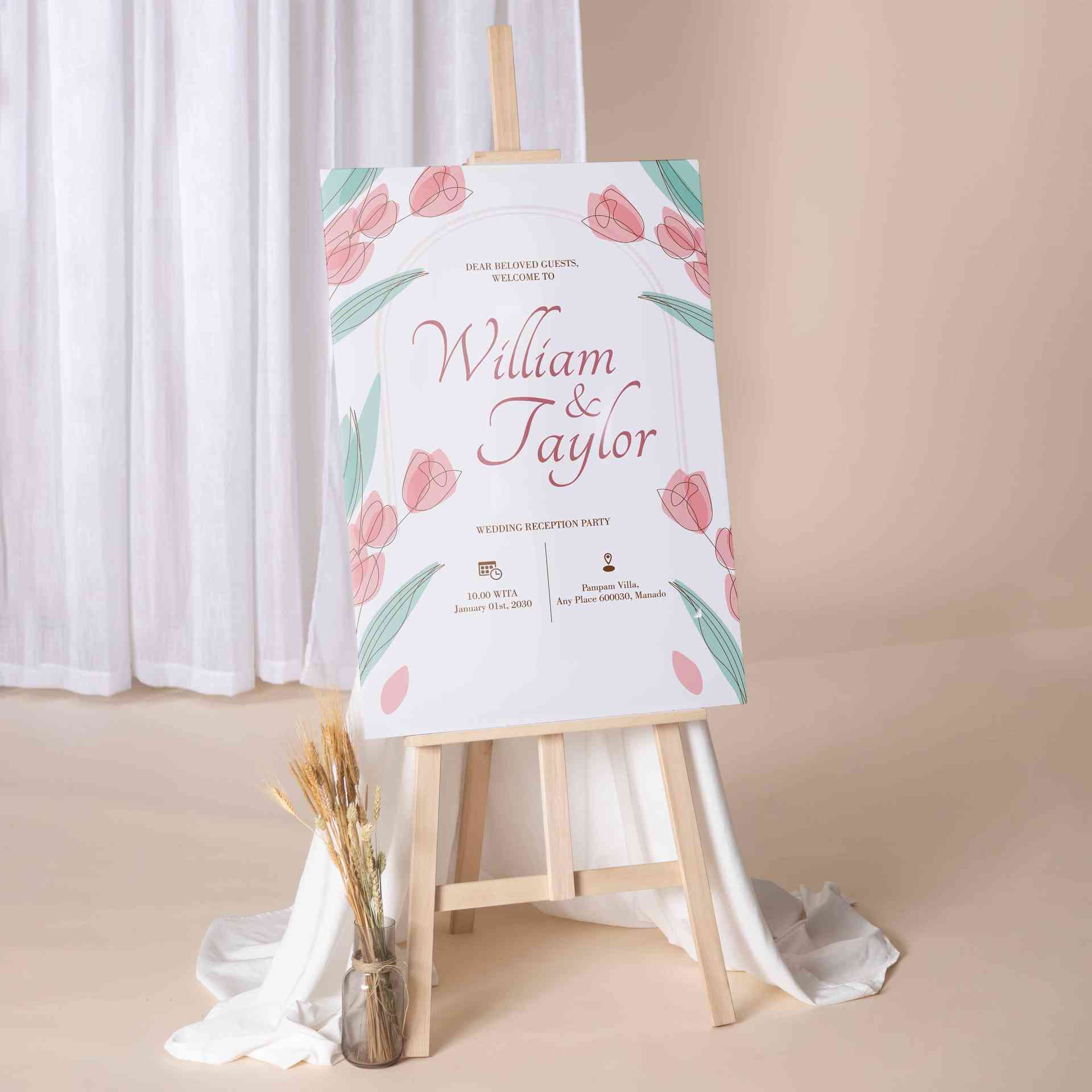 πΈ Wedding Welcome Sign Bertema Floral Lembut & Modern! πΈ Desain papan sambutan ini menampilkan nuansa romantis yang sangat memikat dengan latar...