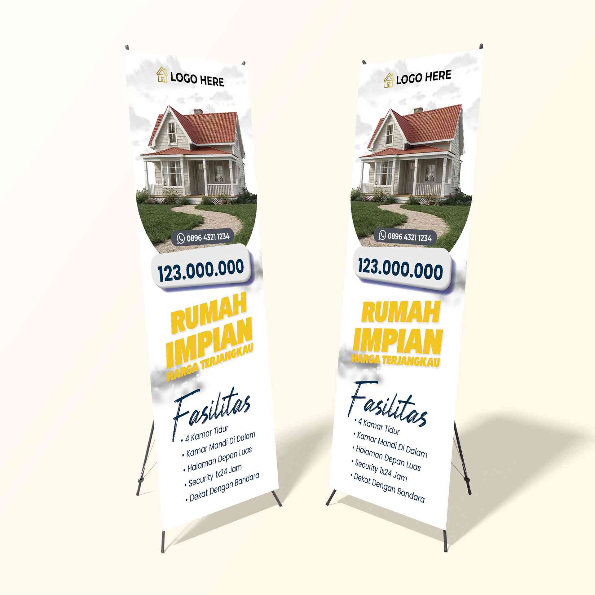 Banner ini menawarkan rumah impian dengan harga 123 juta, menekankan kenyamanan dan kemewahan dengan desain rumah yang menarik. Dilengkapi dengan fasi...