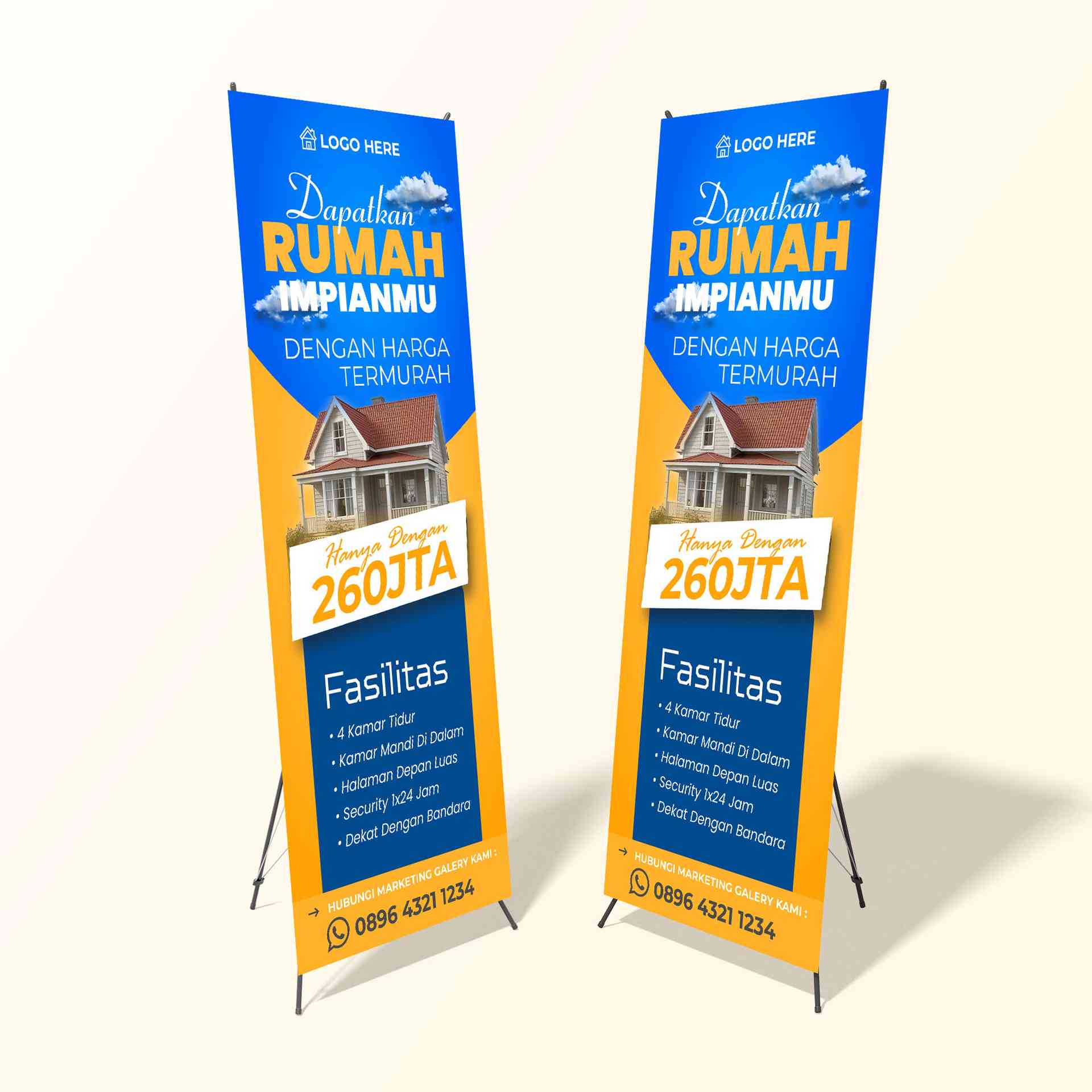 Banner ini menampilkan penawaran rumah dengan harga 260 juta, menawarkan rumah impian yang dilengkapi dengan fasilitas lengkap. Desainnya menggunakan...